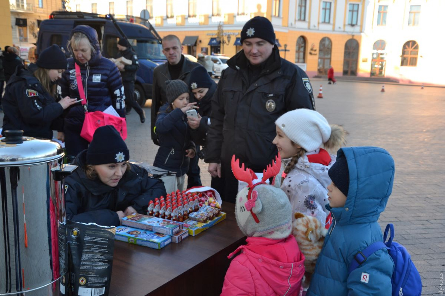Рождественские копы у Дюка: одесские полицейские раздавали сладости и предлагали примерить «алкогольные» очкиСегодня в Одессе состоялась акция «Рождество с патрульными», целью которой было знакомство юных одесситов с работой полиции. Недалеко от памятника Дюку установили столики с печатной продукцией для малышей: в красочных журналах можно было прочесть, как вести себя в той или иной форс-мажорной ситуации. Также патрульные раздавали специальные светоотражающие браслеты, обеспечивающие безопасность передвижения пешеходов в вечернее время. «Для нас очень важно, чтобы дети с детства учились беречь себя и окружающих и старались не попадать в неприятные ситуации», — рассказала офицер патрульной полиции Анна Лискова. Все желающие могли сфотографироваться с бойцами тактической полиции ТОР – эти экипированные и вооруженные до зубов гиганты охотно позировали детям и взрослым. Кроме того, малышам дали возможность посидеть внутри полицейской машины. Не обошлось, конечно, без сладостей – каждый мог выпить горячего чаю с конфетами и печеньем. Для взрослых полицейские также приготовили развлечение – специальные очки, которые имитируют состояние алкогольного опьянения. Надев их, человек должен был пройти по специальной дорожке и при этом не упасть. Корреспонденту «Думской» сделать этого не удалось, даже не смотря на подстраховку со стороны девушки-офицера. А вот один из гостей города на наших глазах прошел дистанцию с удивительной легкостью, после чего признался, что с утра успел принять на грудь не один стакан горячительного. СМЕРТЬ РОСІЙСЬКИМ ОКУПАНТАМ! Помітили помилку? Виділяйте слова з помилкою та натискайте control-enter Новини по цій темі: 29 липня 2025: В Усатово Одеської області сталася перестрілка: поліція працює на місці (відео, оновлено) 28 липня 2025: П'яний на "Ягуарі" або гіпертонік? Звільнений топ-посадовець одеської поліції хоче повернутися на службу 19 червня 2025: Дівчинку, яку шукали сотні одеситів, знайшли вбитою: поліція працює з чоловіком, ймовірно причетним до загибелі 27 травня 2025: Увели гектар в університету: на Одещині засудили земельних аферистів, але без посадки і Хвоста |