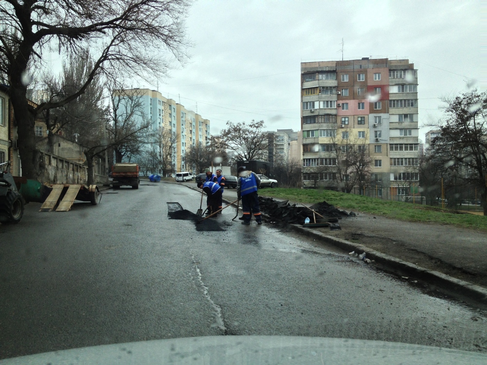 Работники дорожных служб в Одессе латают ямы на дорогах во время дождя, сообщает организация «Общественный контроль». По словам лидера «ОК» Сергея Дубенко, сегодня он увидел такие работы на улице Артиллерийской. При этом бригадир ремонтников заявил, что под дождем «все даже лучше схватится».