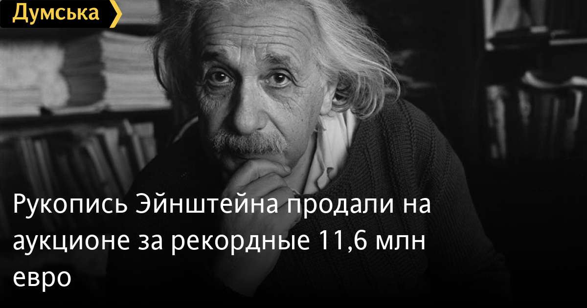Рукопись знаменитого ученого Альберта Эйнштейна с изложением его теории относительности продали в Париже за 11,6 миллиона евро. Об этом сообщает аукционный дом Christie's. Документ состоит из 54 страниц. Немецкий физик писал его вместе со своим близким другом, швейцарским инженером Микеле Бессо в Берлине и в Цюрихе с июня 1913 по 1914 год. Проданная рукопись является одной из двух сохранившихся работ, документирующих происхождение общей теории относительности. Она является выдающимся свидетельством работы Эйнштейна и позволяет погрузиться в сознание величайшего ученого в мире. Проданный лот стал самой дорогой научной рукописью в истории французского аукциона. Но, кто стал новым владельцем рукописи Эйнштейна, не уточняется. СМЕРТЬ РОССИЙСКИМ ОККУПАНТАМ! Заметили ошибку? Выделяйте слова с ошибкой и нажимайте control-enter |