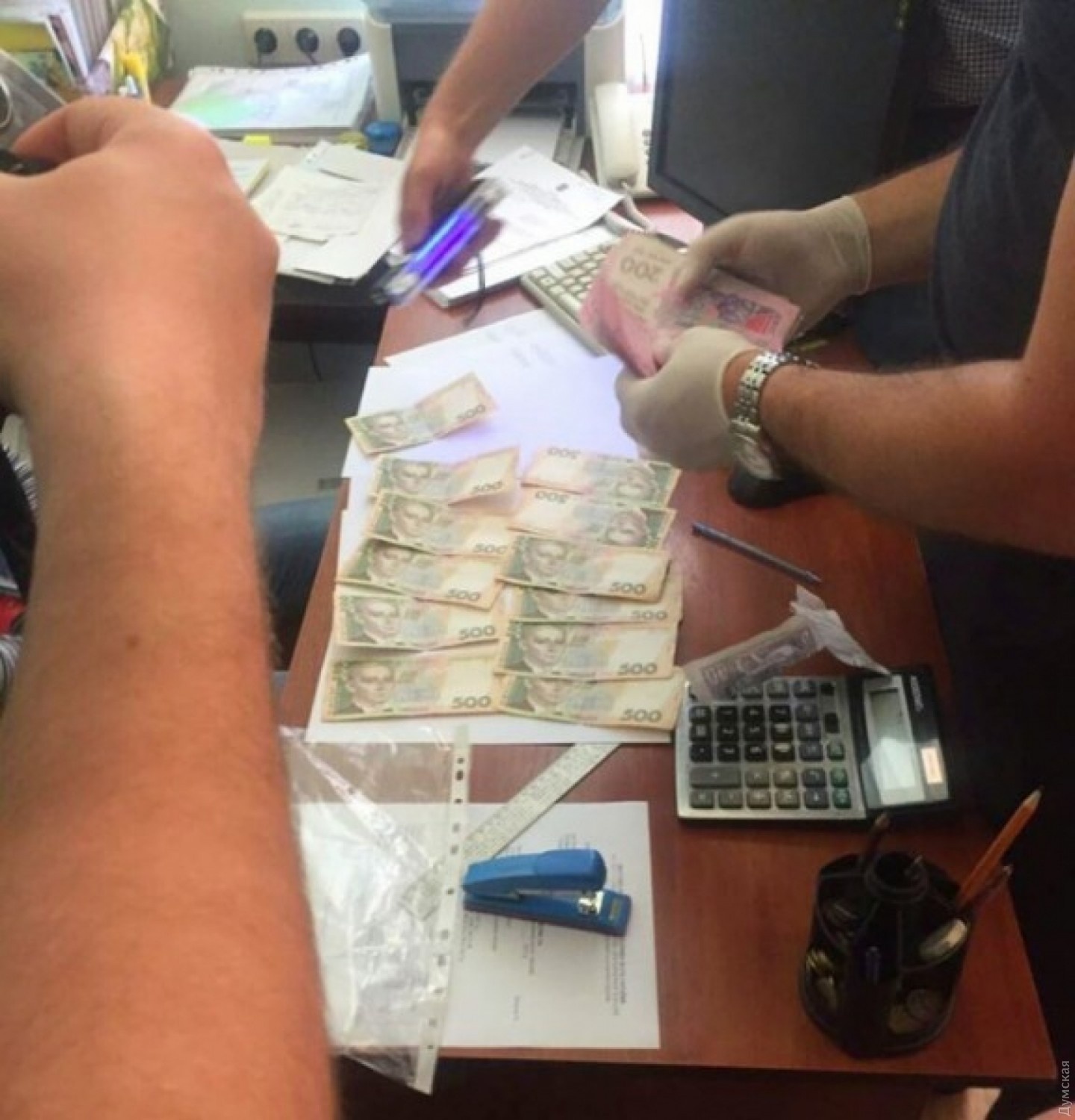 Как сообщила пресс-служба надзорного ведомства, в мае 2017 года обвиняемый вымогал и получил от гражданина 5 тысяч гривен за беспрепятственное заключение договора аренды места на территории центрального склада зерновых в поселке Хлебодарское Беляевского района. Он был задержан при получении взятки.