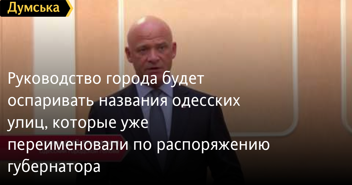 Руководство города будет оспаривать названия одесских улиц, которые уже переименовали по распоряжению губернатораСМЕРТЬ РОССИЙСКИМ ОККУПАНТАМ! Заметили ошибку? Выделяйте слова с ошибкой и нажимайте control-enter Думская ТВ. Сюжеты: