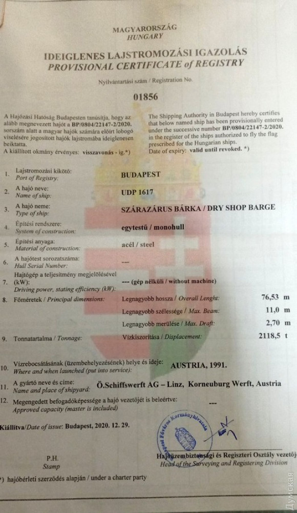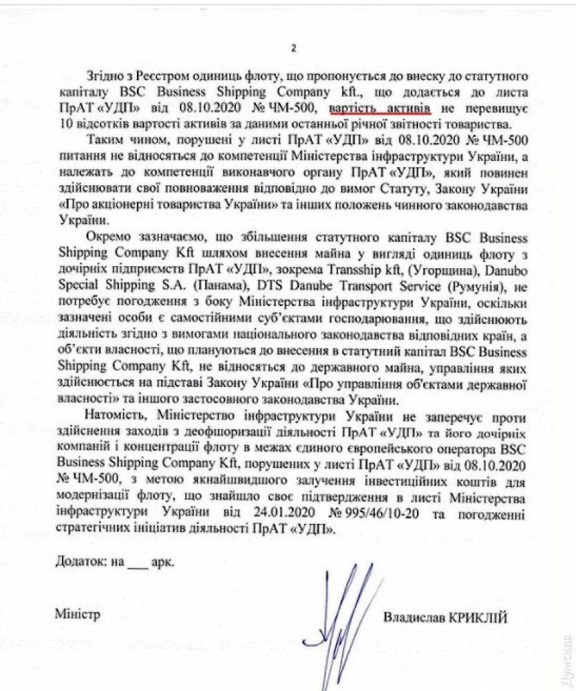 К примеру, весьма подозрительно выглядит то, что за согласованием своих действий Хомяков обратился к Криклию лишь 8 октября, то есть намного позже даты регистрации венгерской компании BSC Business Shipping Company. И даже после того, как первые суда начали готовить к передаче за рубеж (это было в сентябре 2020 года). Выходит, что Хомяков даже не сомневался, что получит согласие от министра. Более того, Криклий в своем ответе указывает, что насчет имущества, находящегося в распоряжении заграничных компаний ЧАО УДП не стоило и спрашивать – якобы это не собственность государства!