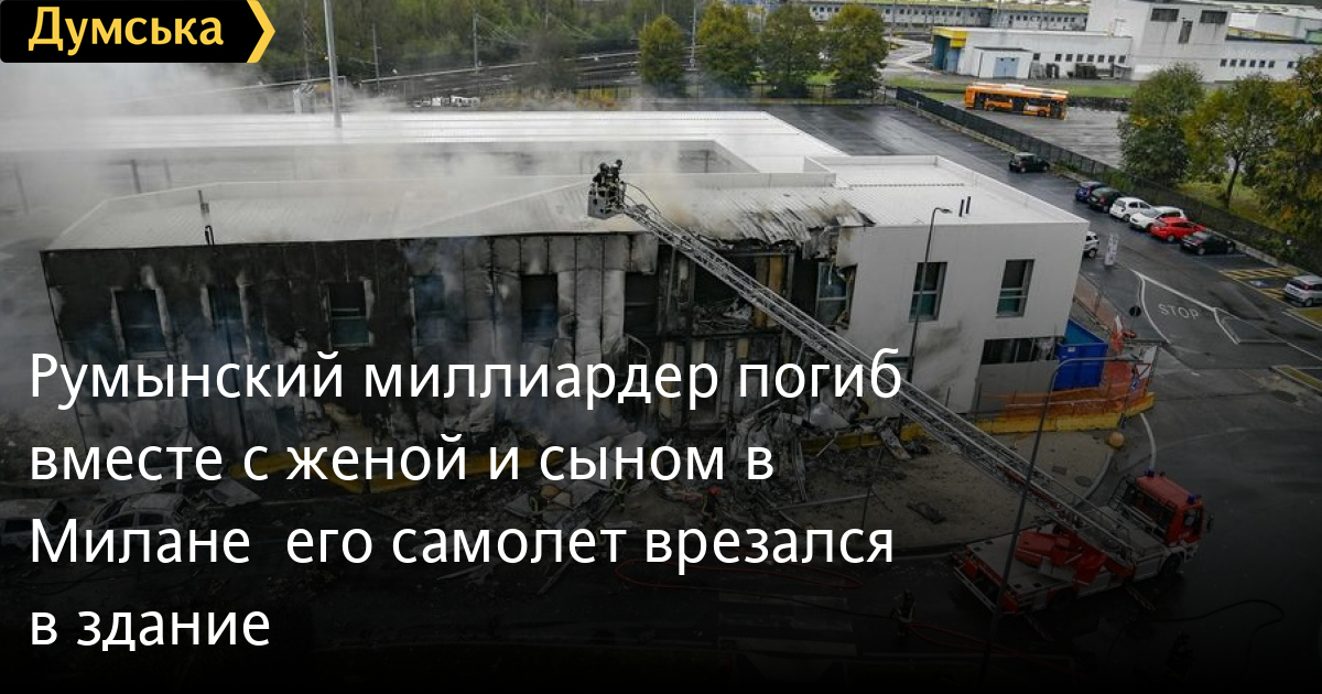 Румынский миллиардер погиб вместе с женой и сыном в Милане — его самолет врезался в зданиеЧастный самолет румынского миллиардера Дана Петреску врезался в двухэтажное офисное здание в Милане. Как сообщает BBC, погибли все восемь человек, которые находились на борту. Сообщается, что пилотом самолета был сам 68-летний миллиардер. Среди погибших оказались его жена и 30-летний сын. Одномоторный турбовинтовой самолет Pilatus PC-12 следовал на остров Сардиния. Он потерпел крушение после вылета из аэропорта Милана Линате. По словам некоторых очевидцев, перед падением самолет горел в воздухе. СМЕРТЬ РОССИЙСКИМ ОККУПАНТАМ! Заметили ошибку? Выделяйте слова с ошибкой и нажимайте control-enter |