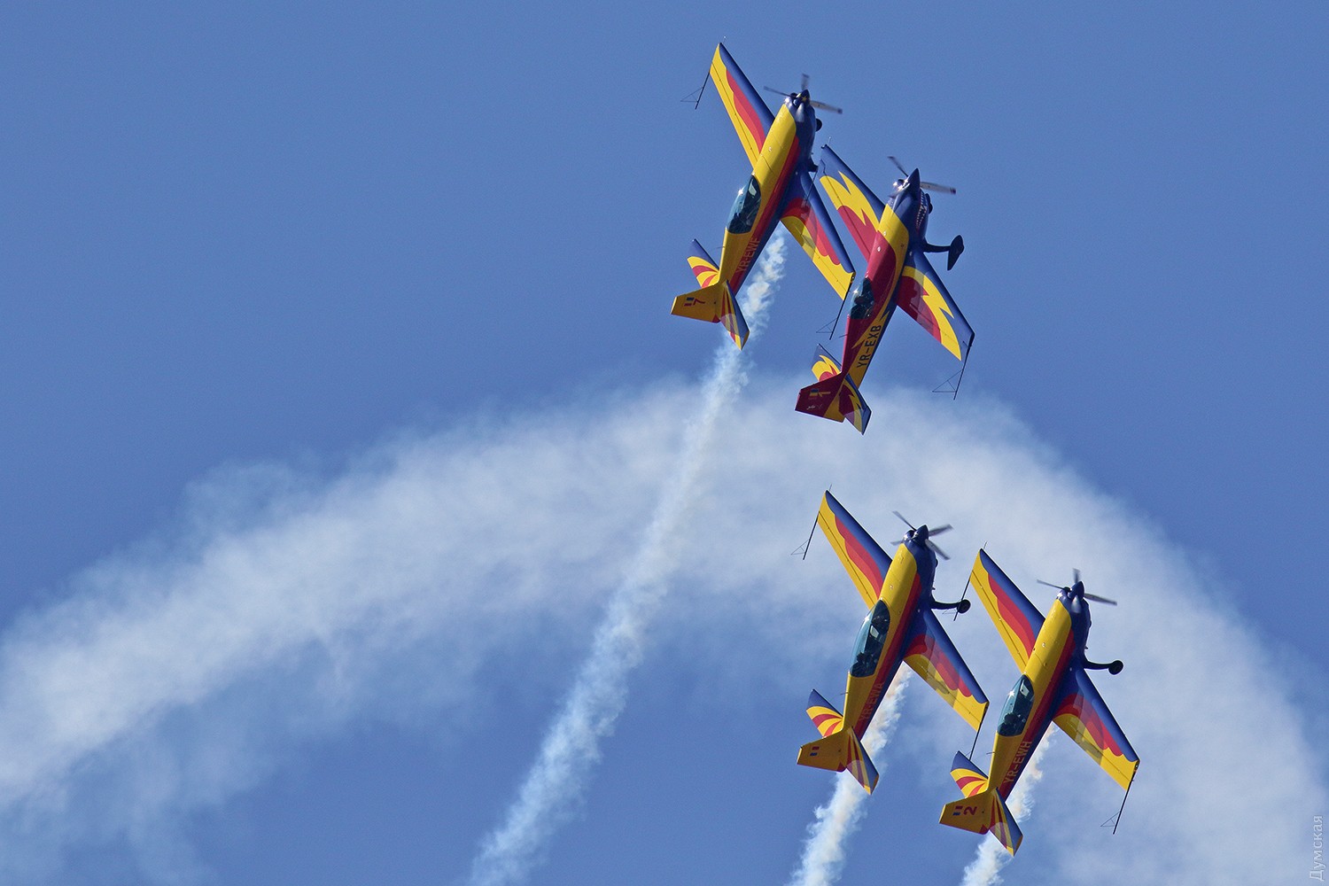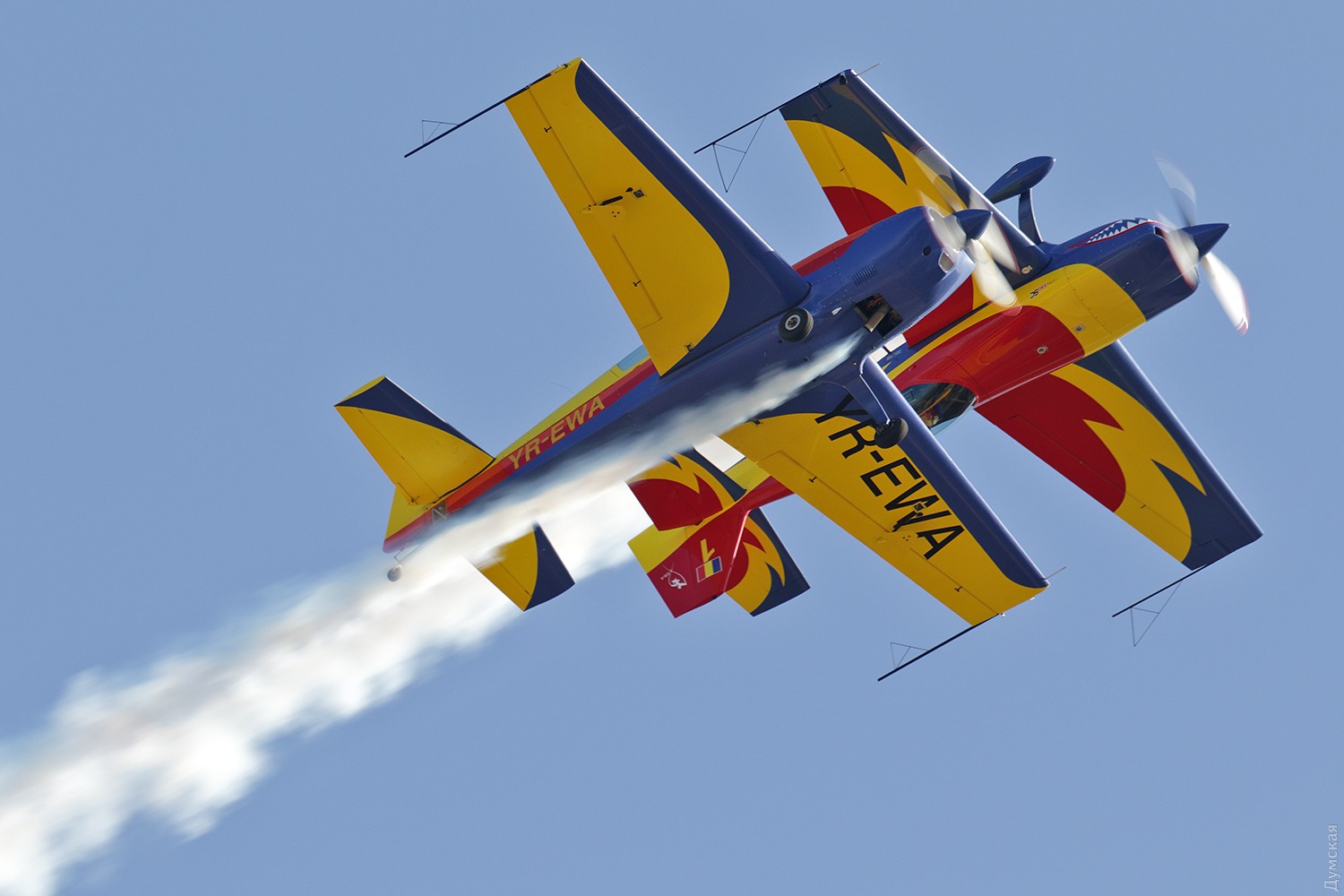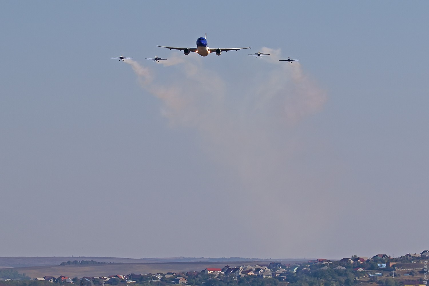 В минувшую субботу в Кишиневском аэропорту прошел авиационный праздник, посвященный дню авиации Молдовы. И хотя страна это небольшая (по площади она равна Одесской области), нам есть чему поучится у молдаван. На празднике побывал корреспондент «Думской» Сергей Смоленцев. Словосочетание «авиация Молдовы» вызывает у многих только улыбку, однако соседи каждый год с размахом празднуют этот день. Настоящее авиашоу на бывшем постсоветском пространстве вещь очень редкая, дорогая и достаточно хлопотная. Для его проведения надо иметь немало сил, средств и энтузиазма, а главное – надо быть настоящим любителем и поклонником авиации. Кстати, в Украине ничего подобного уже давно не проводится. Авиашоу проходило над летным полем кишиневского аэропорта. Зрителей было больше 35 тысяч. Авиационная безопасность – вещь серьезная, поэтому на входе все проходили сквозь «рамки» и подвергались досмотру, но ничего страшного в этом нет. Вход на праздник был абсолютно бесплатным. В самом шоу участвовало несколько пилотажных групп из Румынии. На этот раз «Румынский аэроклуб» выставил три группы на разных типах самолетов. Пилоты на чешских самолетах ZLIN 142 показали очень опасный встречный пилотаж. Пятерка пилотажных EXTRA 300 демонстрировала отличную слетанность в группе и нарисовала в небе огромный смайлик. Тройка советских Як-52 (правда, румынской сборки) устроила учебный воздушный бой. По легенде, пара истребителей ВВС Румынии вступила в схватку с американцем, причем и румыны, и янки несли камуфляж своих военно-воздушных сил времен Второй мировой войны. Победили, конечно, румыны, о чем свидетельствовал красно-желто-синий дым румынского триколора, оставляемый за самолетами после боя. За пределами летного поля зрителей развлекала акробатическая группа баскетболистов-виртуозов Dunkining Devils и концертная программа с участием популярной молдавской группы «Здоб ши Здуб». Старые советские самолеты 1970-80-х годов – Ту-134, Ан-24 и Ан-26 собрали огромные очереди желающих попасть внутрь, чтобы посидеть в креслах пилотов. Большой эффект произвел полет пассажирского Airbus A320 под управлением генерального директора авиакомпании Air Moldova Юлиана Скорпана. Такое можно увидеть только в Кишиневе. Огромный аэробус на сверхмалой высоте проходил над зрителями, закладывал опасные виражи и маневрировал в пределах летного поля. Апогеем праздника стал групповой проход Airbus A320 вместе с румынскими пилотажниками. Праздник закончился с наступлением темноты. Автор — Сергей Смоленцев СМЕРТЬ РОСІЙСЬКИМ ОКУПАНТАМ! Помітили помилку? Виділяйте слова з помилкою та натискайте control-enter |