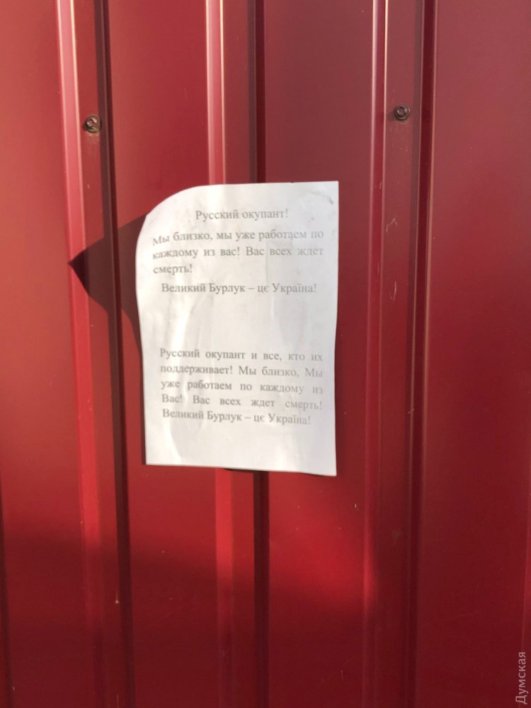 «Русский оккупант! Мы близко и уже работаем по каждому из вас. Вас всех ждет смерть», — листовки на захваченных территорияхУкраинцы на временно оккупированных территориях продолжают сопротивляться агрессору. В Харьковской области российских нацистов перепугали листовки. Об этом сообщают в Территориальной обороне Вооруженных сил Украины. «Русский оккупант! Мы близко и уже работаем по каждому из вас. Вас всех ждет смерть» — такие листовки массово расклеили по временно оккупированному пгт Великий Бурлук. Такие действия уже подняли на ноги фсбшников, которые теперь безуспешно ищут наших подпольщиков. «9 мая орки ожидали увидеть великие празднования «дня победы», а получили акцию в тылу на оккупированной ими территории. Ни один рашист не будет знать покоя на нашей земле. Большой Бурлук – это Украина», — заявляют в тероброне. СМЕРТЬ РОСІЙСЬКИМ ОКУПАНТАМ! Помітили помилку? Виділяйте слова з помилкою та натискайте control-enter |