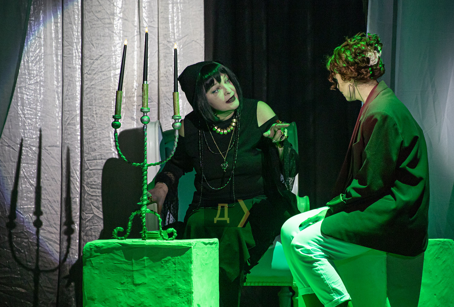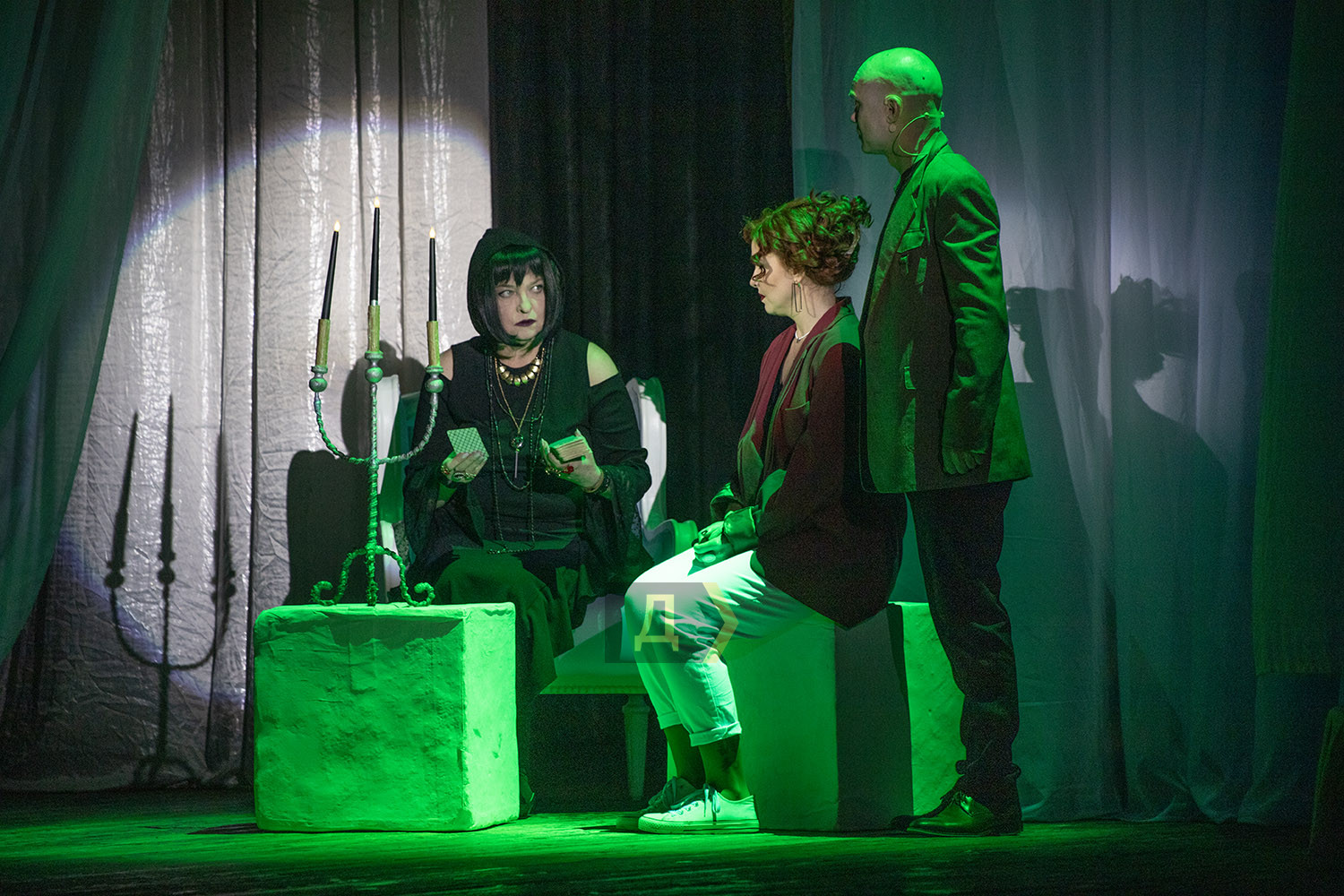 Рыжая ведьма и лысый демон, или Одесский театр едва не вызвал нечистого в пятницу, 13-гоПремьерой спектакля «Дежавю» по мотивам произведений Констанс Сэйерс Одесский областной академический драматический театр бодро встретил публику 13 марта, в пятницу. Жанр определила режиссер-постановщик Елена Пушкина одним словом: «мистика». Сюжет широкому зрителю не слишком знаком, эффекта дежавю, то есть, «уже виденного», ожидать не приходится. Хотя… … В 1895-м ее звали Джульетта. В 16 лет она стала музой и возлюбленной женатого художника – и это принесло ей только боль. В 1932-м ее звали Нора. Она сбежала в Голливуд от любовника, награждавшего ее побоями, навстречу блеску и славе кинозвезды. В 1970-м ее звали Сандра. Она играла в музыкальной группе, влюбилась в чужого мужа – и обнаружила, что умеет исцелять наложением рук. Сейчас ее зовут Хелен Ламберт. Ей 33, она руководит крупным журналом и только что развелась. Неожиданно женщина встречает мужчину, который утверждает, что любил ее в прошлых жизнях, и что Хелен обречена умереть, едва ей исполнится 34. А чтобы разорвать проклятый круг смерти, перерождений и любовных интриг, делающих несчастной ее и других, Хелен придется пожертвовать самым дорогим. Рыжеволосую ведьму Хелен, в каждом воплощении забывающую о своей силе, играет Анна Моргунова, а Джульетту, Нору и Сандру – Полина Корец. За своими предыдущими воплощениями Хелен наблюдает со стороны, во снах. Это стало возможно после того, как с ней стал общаться тот самый загадочный мужчина, Люк Варнье, эффектный рослый и лысый демон. Петр Голубченко убедителен и загадочен в каждом движении, каждой реплике, ну разве только не в этой: «Ти мене звеш». Не «звеш», а «кличеш», а Хелен отвечает: «Я вас зву?». Заучили так, есть и еще пару шероховатостей. Но это легко простить. В антракте подходит знакомая билетерша: «Ну как вам наш Петя? А видели вы его в «Вие», он там Сотника играет?». Что вы говорите, надо смотреть! Мистические персонажи молодому артисту к лицу. Небольшая, но яркая роль Прорицательницы удалась народной артистке Украины Ольге Равицкой, вот с кем бы в главной роли снимать сериалы вроде «Слепой»! Да, вместе с молодой ведьмой новые жизни получают и люди из ее ближнего круга, повторяя все те же ошибки в общении с ней, часто подвергая ее абьюзу, что для них опасно. «Дежавю» дарит приятное послевкусие, несмотря на обилие мрачных ритуалов, пляшущих призраков (за хореографию спасибо Екатерине Бойко), зловещей пентаграммы, жутких проклятий без особой на то мотивации. «Боже, какая бессмыслица, я скоро с ума сойду!» – вырывается у Хелен, когда Люк в который раз пересказывает ей перечень ведьминско-демонических событий, и зрители с пониманием улыбаются… Когда театр устает в своих попытках вызвать врага рода человеческого прямо на сцене, звучит со вкусом подобранная музыка, например, из оперы Оффенбаха «Сказки Гофмана», но и тут упоминается, будто это произведение проклято (в консерватории об этом не знают, да и пусть). Хит старого Голливуда, Not for just a day but always, становится лейтмотивом жития Хелен, когда она оказывается в теле актрисы Норы. Вот эта любовь, не на день, а навсегда, связывает ее, впрочем, не с гангстером Риком, как и Джульетту не навек связала с живописцем Маршаном (обоих героев играет Валентин Базаря). Ведьма и демон, вот поистине союз нерушимый, так называема