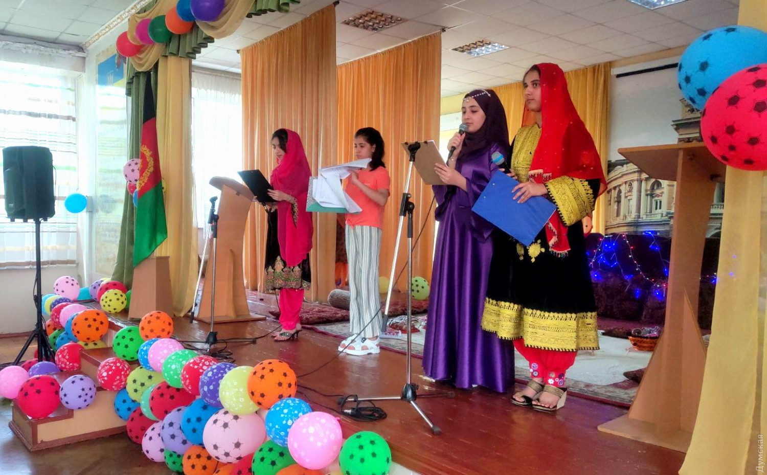 Окончание священного месяца Рамадан отмечают в эти дни мусульмане всего мира, а вместе с ними — представители афганской общины, которые уже много лет живут в нашем городе. Ученики афганской воскресной школы по случаю Ураза-байрам провели праздничный концерт, на котором побывал корреспондент «Думской». Афганская община появилась в нашем городе еще в советские времена, ее костяк составили студенты, которые учились в одесских вузах. Позже к ним присоединились беженцы из этой южноазиатской страны, война в которой не прекращается уже четыре десятилетия. Афганскую воскресную школу, которая проводит занятия в помещениях школы 72, посещает 150 детей. Как рассказал нам руководитель общественной организации «Фонд «Дружба» Мохд Осман, большинство учеников воскресной школы родилось в Одессе. Занятия в школе позволяют детям не забывать свои корни, изучать языки, историю, традиции родины своих предков. Одна из таких традиций — праздник разговения Ураза-байрам. Его празднуют после завершения священного месяца Рамазан. Доктор юридических наук профессор ОНЮА Хашматулла Бехруз поясняет, что Ураза-байрам так же важен для мусульман, как праздник Пасхи для православных христиан. «Ограничения для мусульман во время Рамадана гораздо строже, чем христианский пост, — говорит профессор Бехруз. — От восхода и до заката здоровым людям нельзя принимать пищу, пить, курить Ну, курить вообще вредно, но во время Рамадана это запрещается полностью». Но нельзя сводить ограничения Рамадана только к вопросам диетологии, считает он: «В целом это достаточно сложное испытание, и не столько физическое, сколько нравственное. В конце Рамадана организм осваивается, входит в ритм, Но за это время человек должен суметь удержаться от соблазнов, должен прочувствовать голод и лишения — а без этого он не сможет понять страдания нищих и обездоленных». Как Пасху не стоит сводить только к куличам, писанкам и крашенкам, так и Ураза-байрам — не только праздник разговения. Окончание поста — это в первую очередь дни, когда мусульмане вспоминают о близких, помогают нуждающимся и совершают благие дела. Одно из таких благих дел - праздничный концерт, который организовали ученики воскресной школы. По словам 15-летней Осай Мохаммад, в эти дни в Афганистане традиционно готовят сладкие и другие вкусные блюда, чтобы угостить родственников, соседей, друзей и знакомых, и для детей это один из самых любимых праздников. Отмечают Ураза-байрам широко — в разных странах празднуют и веселятся от трех до семи дней. Праздник в Одессе носил более светский характер. В актовом зале школы 72 собрались представители общины. Царило праздничное и веселое настроение, многие гости были в национальных афганских нарядах, пришли с малышами. Официальная часть началась с государственных гимнов Исламской Республики Афганистан и Украины — их исполнил хор воскресной школы. Ученики 72-й школы поприветствовали своих афганских друзей и преподнесли им традиционный хлеб-соль на вышитом рушнике. С приветствием и поздравлениями выступили многочисленные гости, среди которых — Чрезвычайный и полномочный посол ИРА господин Вали Монавар и представители общественной организации «10 квітня». Ученики воскресной школы порадовали гостей песнями и национальными танцами. Редакция «Думской» поздравляет одесситов афг