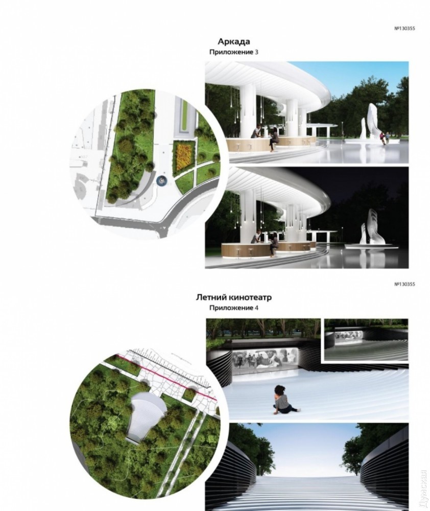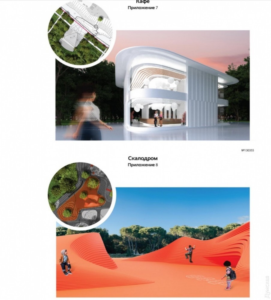 В одном проекте есть «зал общественных событий», похожий на Колизей, в другом — «космический» кафетерий, летний кинотеатр и «скалодром». Также авторы предлагают украсить парк фонтанами.