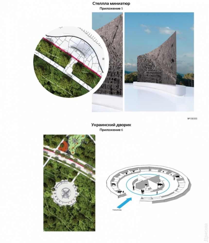 Все три проекта предполагают строительство в парке ряда объектов, которых нет сейчас. Во-первых, это «украинский уголок», который почему-то видится создателям как сельская хата с тыном, горшками и домашним скотом. Судя по всему, другой украинской культуры архитекторы не знают.