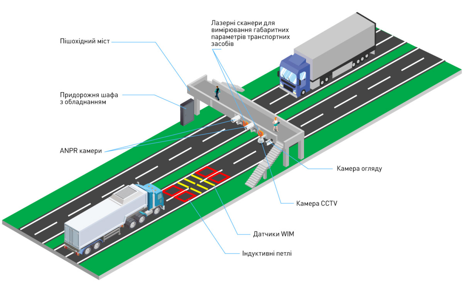 Новая система WiM (Weight-in-Motion, взвешивание в движении) — это специальное сертифицированное оборудование, которое устанавливают в дорожное покрытие и над дорогой. Она записывает вес, габариты и номерные знаки грузовика и позволяет прямо на ходу фиксировать нарушения весового режима и превышение допустимых габаритов в автоматическом режиме, без участия человека.
