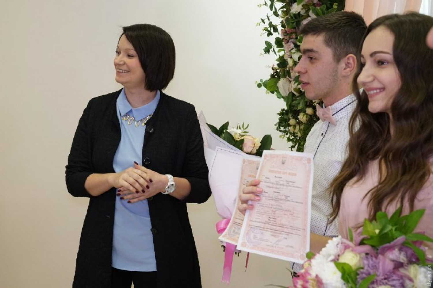 Во время открытия состоялась торжественная роспись молодоженов, которые воспользовались услугой экспресс-брака. Его, к слову, можно оформить за один час, независимо от места регистрации и гражданства.