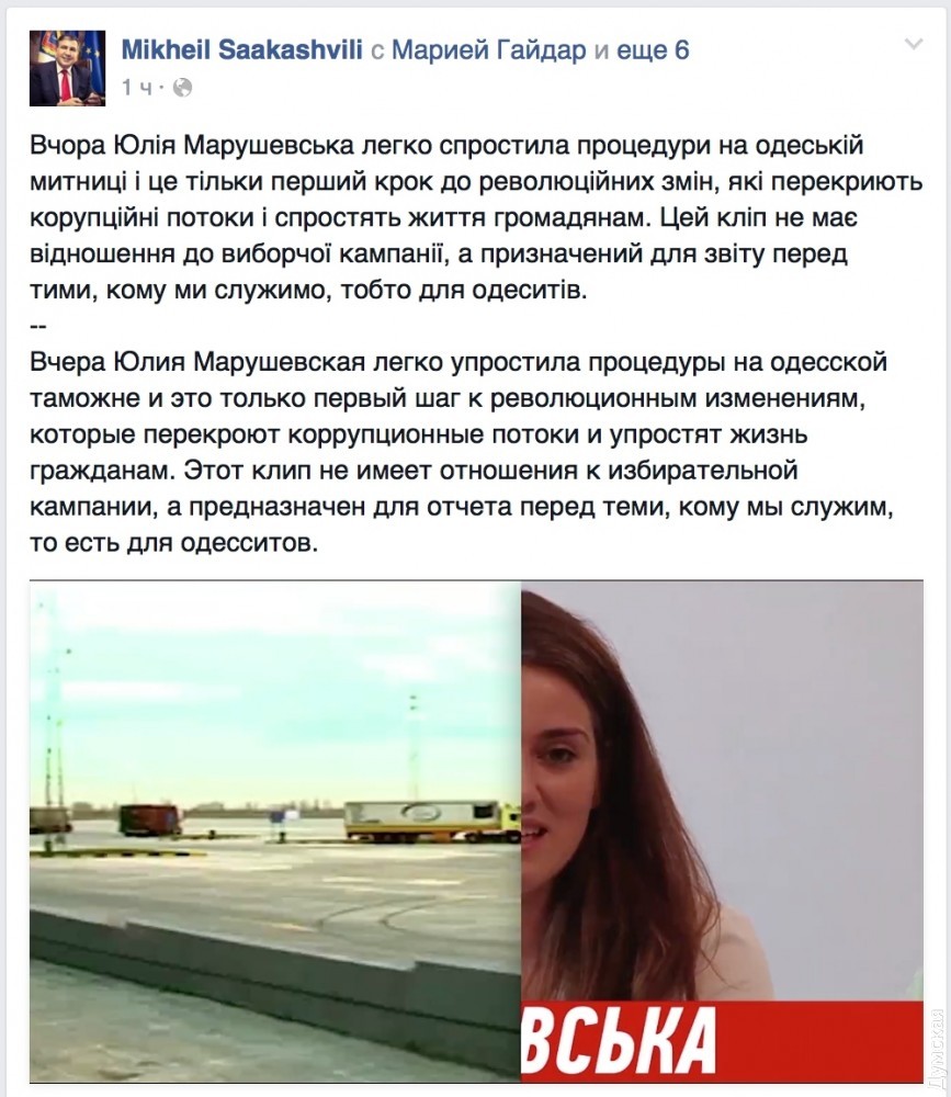Как видно из записи Саакашвили на его странице в ФБ Марушевская «упростила процедуры на Одесской таможне», т.е. теперь товары будут подлежать растаможке по цене договора. Это значит, что разница между договорной ценой и фактической на прямую будет поступать в нему карман посредством цепочки через ее супруга. Эта схема в свое время была опробована на Батумской таможне и дала неплохой результат.