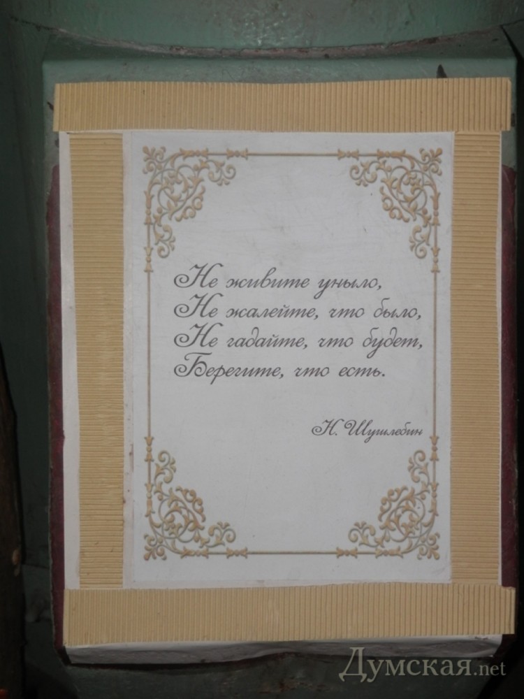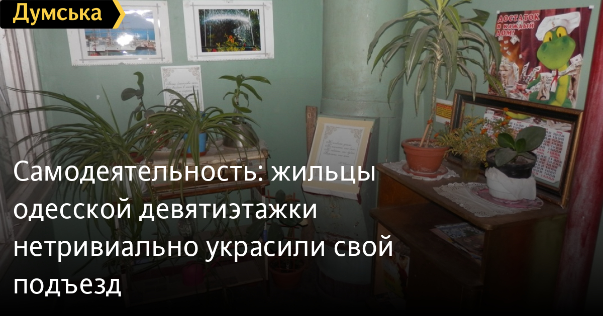 Самодеятельность: жильцы одесской девятиэтажки нетривиально украсили свой подъездЖильцы девятиэтажного дома №1 по Сегедской улицы, которым надоело ждать манны небесной трудовых свершений со стороны коммунальщиков, решили сами облагородить свой подъезд. На лестничных площадках они поставили этажерками с цветами, развесили картины с пейзажами и мультяшными героями, принесли в качестве элементов декора старые чемоданы и чайники. А самые нелицеприятные уголки с неработающими мусоропроводами обклеили распечатками с философскими текстами. Соседи инициативной группы, занимавшейся украшением подъезда, в восторге от результатов их труда. «Очень приятно, заходя в дом, читать эти строки, даже настроение поднимается. У самой возникло желание что-то такое соорудить, например, поставить тут полку с книгами», — рассказала «Думской» жительница дома Татьяна. СМЕРТЬ РОССИЙСКИМ ОККУПАНТАМ! Заметили ошибку? Выделяйте слова с ошибкой и нажимайте control-enter |
