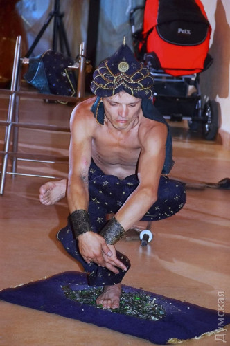 На моей памяти еще не было в Одессе такого тяжелого 1 апреля. Гул барабанов и пищалок давно в прошлом. Были Юморины серые, были тревожные, были веселые и шумные, но таких — молчаливых — не было. Это день скорби по погибшим от обстрелов. А еще мы хороним режиссера Виллена Новака и «Комара» — Володю Комарова из «Масок». Уныло и холодно. А тут еще преподаватель Музычко каркает над нашим погостом, как ворон: «Ах-ха, москваротый отправился на концерт Кобзона!» Это он про Володьку так. Ты что, совсем попух? «Комар» молчал во всех фильмах! Они же мимы! Был бы Музычко обычным сетевым маргиналом, я бы не обратил внимания. Но он же историк в университете, он детей учит. Хмуро. И пакостно. Я отправился к Женьке Факиру — попить крепкого чая и вспомнить Комарика. «Я же ездил в разные города на гастроли с Комариком. Агопьян, Комарик — в одной бригаде. А Жора и Боря — в другой. Чтобы успевать везде, куда приглашают, они поделились. Ну и я успевал и туда, и туда. Володя хороший мужик был. Безобидный», — говорит Женька вздыхая и хлебает чай. КТО ТАКОЙ ФАКИР-НИНДЗЯ Не знаете Женьку? Это он шел в колонне на Юморине, а над ним несли лозунг: «Факир был пьян, и бабу распилили!» Его визитка — это отдельный жанр: факир, йог, каскадер, дрессировщик, мастер боевых искусств, артист оригинального жанра Евгений Антонов — укротитель огня, повелитель рептилий, маэстро острых ощущений и экстремальных шоу для детей и взрослых. Он выдыхает огонь и засовывает его себе в глотку. Он ходит по углям, битому стеклу, прыгает через кольцо сабель, делает еще сотню зубодробительных трюков и опасных фокусов. Когда ему мешают выступать, он безжалостен. Запросто может скинуть чувака с пирса, чтобы тот не мешал и «под огонь» не лез. В Женьке внутри сидит сжатая пружина. Иногда его задерживали с реквизитом — нунчаками и мечами. Шили «холодное оружие». Прямо в отделении Женька карабкался по стенам на самый потолок, доказывая, что он ниндзя. Верили. Отпускали. С виду он страшен: небольшой рост, рубцы на лице, зазубрина на носу и колючие глаза. На руках — татуировки. Новые перекрыли старые, «плохие». У него трое детей, не надо им это видеть. Последний раз забрали его в райотдел на выборах в 2014. «Я пришел в своем костюме, в цилиндре на избирательный участок ( у него есть и костюм аристократа. С жабо) Менты возбудились. Увезли. А в райотделе отпустили. Меня уже там знают». Еще раз задерживали его, когда шел после выступлений в костюме Зорро. Факиру словно нравиться попадать в передряги. КАК ЖЕНЬКА — ФАКИР ВЫСТУПАЛ ПЕРЕД ПРЕЗИДЕНТАМИ Ха, думаете Женька такой себе пурэц с Молдаванки который выступает на корпоративах? А вот и нет. «Кучма когда к нам сюда приезжал в Дом приемов, меня позвали. Правда огнем на него не дышал. Там охрана же! Все мое снаряжение перетрусили, пересмотрели, сто раз узнали, что будет, как будет. Столы буквой П стояли. Вход между ними сделали. А мне сразу охрана сказала: вот за эту черту не заступай, только переступаешь, мы стреляем. Перед Кравчуком в Киеве, выступал. Но его я не видел. Сказали, что он в зале сидит. Смотрит». КОМУННА — ДВОРЕЦ Живет он в коммуне-общаге, облупленной и «страшной как моя жизнь». Я был тут десять лет назад. Осмотрелся. Обомлел. И воскликнул: Хотите посмотреть, можно ли жить как король в этих условиях? Так вы увидите! Рядом с общим туалетом и душевой Женькина квартира с царс