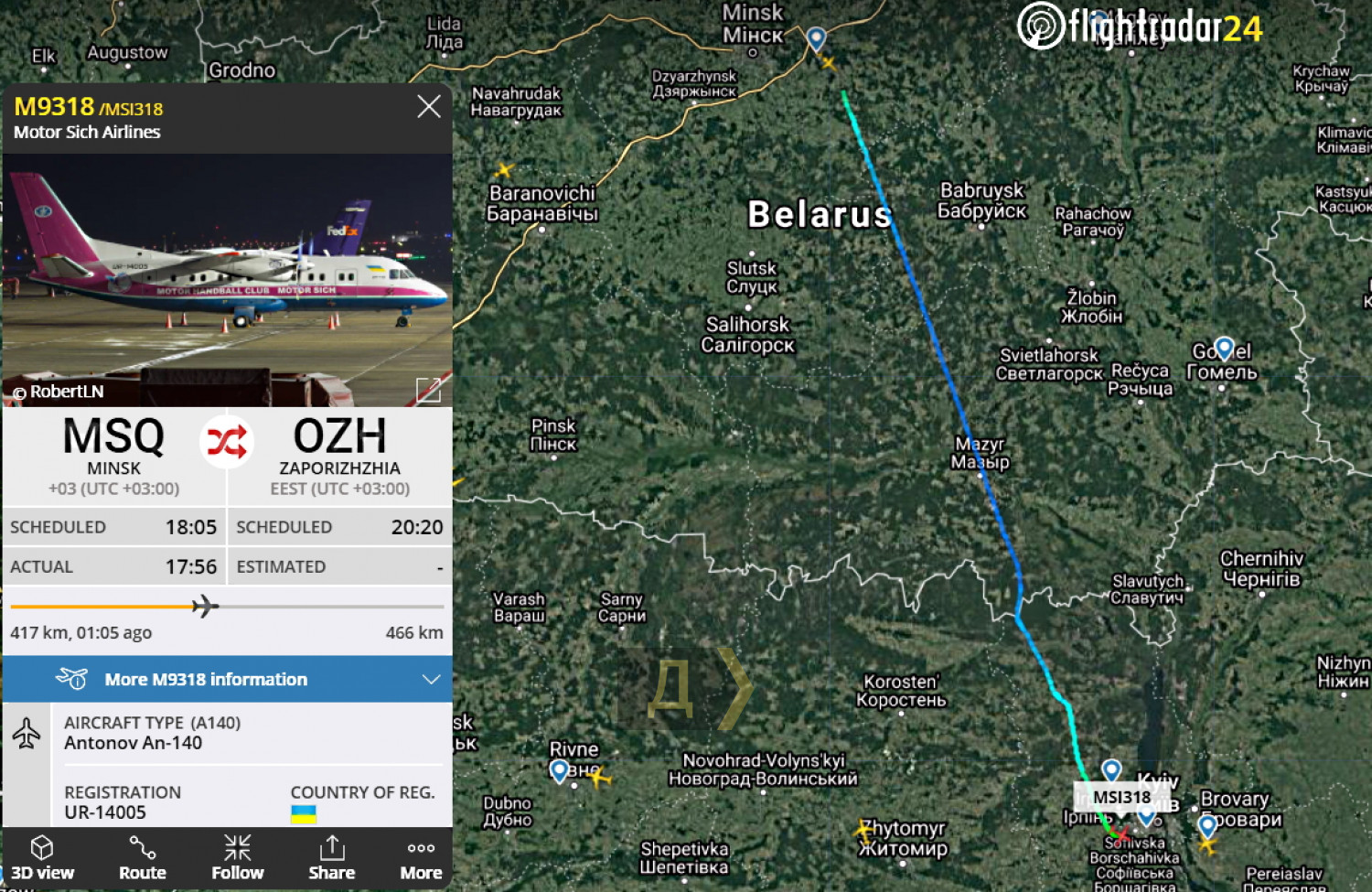 Сегодня в 19:06 самолет Ан-140 украинской авиакомпании «Мотор Сич», следовавший рейсом Минск — Запорожье, совершил аварийную посадку в аэропорту «Киев» имени Игоря Сикорского.