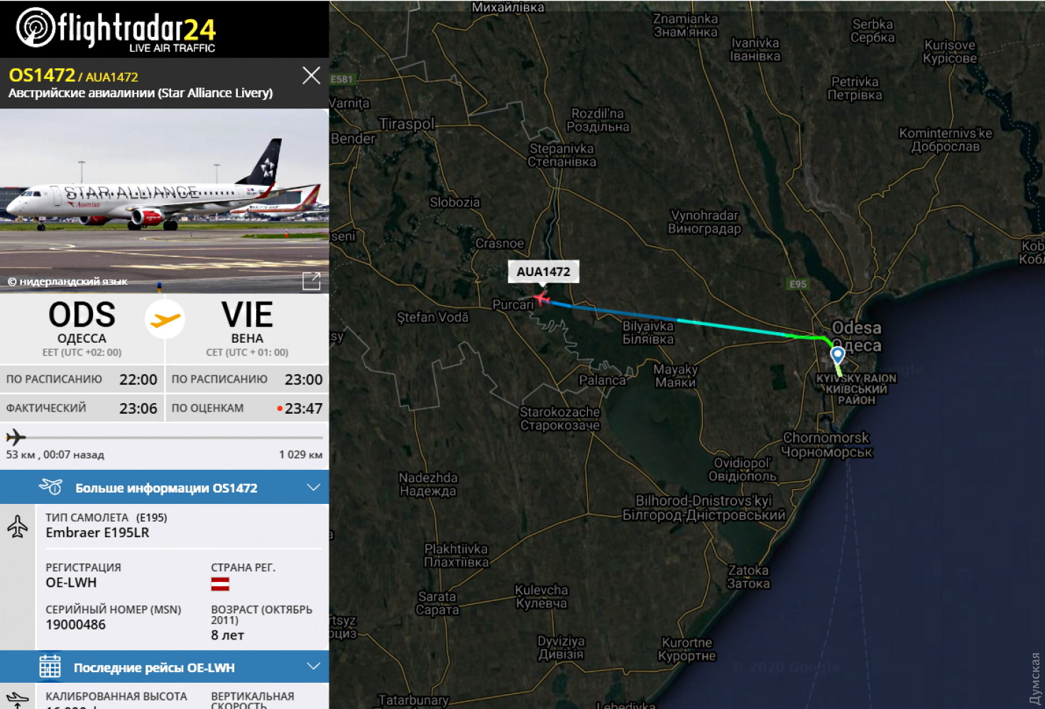 Самолет прибыл в Одессу из австрийской столицы строго по расписанию, но на подходе к нашему городу один из двигателей «поймал» кого-то из пернатых. Борт приземлился в 12:34, пилоты зарулили на стоянку для высадки пассажиров из Вены, а технический персонал начал осмотр на предмет повреждений, который продолжался несколько часов.