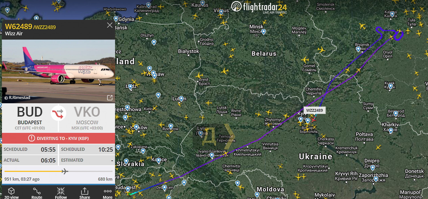 Утром 2 ноября неожиданно изменил направление самолет венгерского лоукостера WizzAir, следовавший рейсом Будапешт — Москва. Самолет должен был приземлиться в аэропорту «Внуково», однако, сделав несколько кругов над Калугой, лег на обратный курс и в 10:45 приземлился в «Борисполе». На борту никаких происшествий не случилось — виноват туман, который окутал столицу РФ. Представитель Росавиации сообщил, что такая же ситуация в Москве была вчера, когда на запасные аэродромы отправились около 30 бортов. ОБНОВЛЕНО В 15:15 Самолет вылетел из «Борисполя» в 14:41, но не пошел в аэропорт назначения, а решил вернуться в Будапешт. СМЕРТЬ РОССИЙСКИМ ОККУПАНТАМ! Заметили ошибку? Выделяйте слова с ошибкой и нажимайте control-enter |