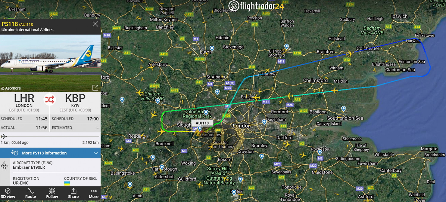 Самолет украинской авиакомпании МАУ сегодня днем вылетел из Лондона, но через полчаса вернулся. Embraer-190LR с идентификационным номером UR-EMC в 11:56 по Гринвичу покинул аэропорт Хитроу, направившись в украинский Борисполь. Через 16 минут после взлета, находясь на высоте шесть тысяч метров, экипаж принял решение вернуться. В 12:42 самолет успешно приземлился. Причина возвращения пока не известна, самолет так и не вылетел повторно в Борисполь. СМЕРТЬ РОССИЙСКИМ ОККУПАНТАМ! Заметили ошибку? Выделяйте слова с ошибкой и нажимайте control-enter |