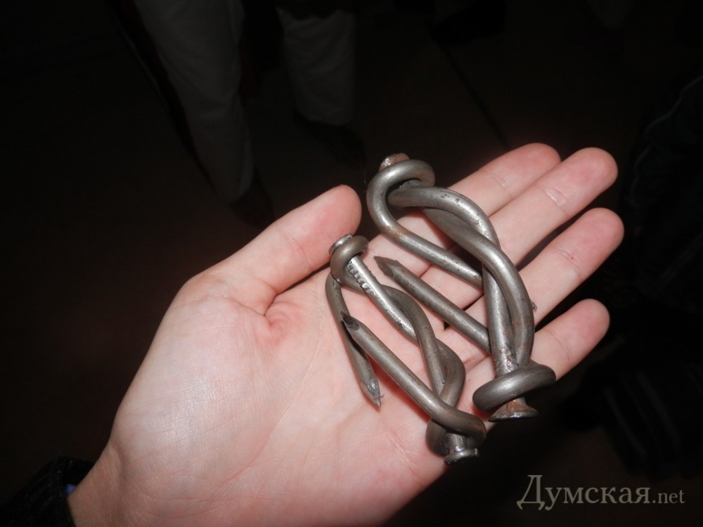 Самсон в погонах Самый сильный! Бывший милиционер в 70 лет ходит по битому стеклу и завязывает гвозди в узлыПовелитель железных гвоздей, штанговый маг и чародей, бесстрашный стеклоход Николай Пасечник в свои неполные 70 лет по-прежнему остается самым сильным мужчиной Одессы. Сегодня рослый и жилистый отставной милиционер с импозантными усами передает свой опыт подрастающему поколению и дает мастер-классы. «Думская» пообщалась с необычным одесситом. ОДНИМ МАХОМ ДЕСЯТЕРЫХ ПОБИВАХОМ Богатырская силушка не раз помогала Николаю Антоновичу в его работе. В брежневскую эпоху он прославился на все областное управление внутренних дел, сумев скрутить сразу восьмерых хулиганов! Дело было так. Пасечник одно время нес службу постового на Приморском бульваре и создал немало проблем местной шантрапе. Те решили проучить настырного правоохранителя. Подослали к нему своего человека, который рассказал милиционеру, что на склоне под бульваром лежит труп. Он тут же отправился на место, где его поджидала вся шайка — десять здоровых мужиков. К несчастью уркаганов, они не догадывались о том, с кем им предстоит иметь дело. Двоим нападавшим каким-то чудом удалось сбежать, остальных наш герой связал одной веревкой и доставил в отделение. Этот случай вошел в анналы облУВД. Сам силач говорит, что обязан своими способностями трудному детству. Родился он в селе неподалеку от Каменец-Подольского в многодетной семье казака. С 9 лет вместо беззаботных игр во дворе и чтения книг вкалывал на поле, а после восьмого класса отправился учиться на тракториста. Именно физический труд, уверен Пасечник, развил в нем богатырскую силу. На досуге он тягал 115-килограммовую штангу и печалился, что у семьи нет средств, чтобы докупить еще «блинов». Потом начал участвовать в различных соревнованиях по тяжелой атлетике, причем делал это втайне от родителей – отец и мать не одобряли странное и, на их взгляд, бесполезное увлечение сына. «Однажды я сказал, что иду в военкомат, а сам пошел на первенство района по гирям и занял первое место. Родители узнали о моем вранье уже из газет», — вспоминает силач. Потом пришло время призыва. Парня отправили тянуть лямку в одесский конвойный полк (сейчас это внутренние войска МВД). Там недюжинные способности Николая приметил мастер дзюдо Роберт Бабаянц и пригласил его в свою секцию. «После дембеля я уже не возвращался на родину, так как меня пригласили на службу в милицейский спецбатальон (21-й отдельный специальный моторизированный батальон милиции, что-то вроде современного «Беркута» или спецподразделений ВВ, - Ред.). Сначала работал «в поле», а потом мне поручили обучать бойцов приемам рукопашного боя», — рассказывает силач. В 25 лет Пасечник стал мастером спорта по самбо — одним из первых в Союзе. «ИНОГДА МОЖНО И РЮМОЧКУ ПРОПУСТИТЬ» Затем он поставил перед собой цель стать мастером спорта по гире. Поднял двухпудовый спортивный снаряд 76 раз, что оказалось недостаточно для тогдашних нормативов. «Я настроился на вторую попытку, но очень не вовремя попал в серьезную автокатастрофу. В течении года пришлось восстанавливать свои силы, чтобы вернутся к прежней форме. Впору было уходить на покой! Прийти в себя мне помогло голодание», — делится секретами своего здоровья Николай Антонович. С тех пор он старается не переедать, а в ежедневном рационе 