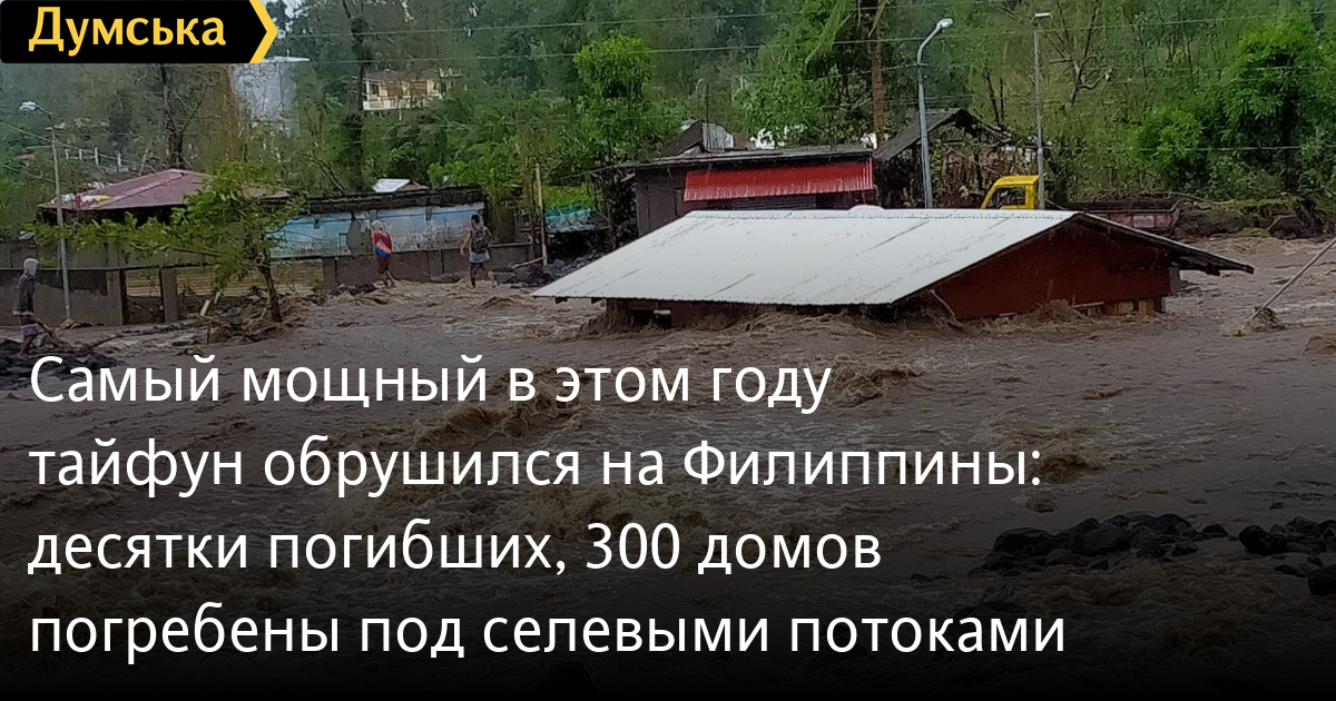Самый мощный в этом году тайфун обрушился на Филиппины: десятки погибших, 300 домов погребены под селевыми потокамиМощнейший тайфун «Гони» обрушился на Филиппины в минувшее воскресенье. Как сообщает Reuters, это самый сильный тайфун из всех, зафиксированных в мире в этом году. Больше всего пострадала провинция Албай в регионе Бикол. Реки вышли из берегов, были разрушены дамбы, затопив несколько деревень. Более 300 домов были погребены под селевыми потоками. Максимальная скорость ветра достигала 265 км/ч. С главного острова Филиппин — Лусона власти эвакуировали около миллиона людей. В результате погибли по меньшей мере 10 человек. Еще трое пропали без вести. По заявлению правительства, потери от тайфуна понесли предположительно около 31 млн филиппинцев. Отметим, каждый год Филиппины сталкиваются в среднем с 20 штормами и тайфунами. Самый смертельный тайфун был зафиксирован в стране в 2013 году, тогда погибли более 7 300 человек. СМЕРТЬ РОССИЙСКИМ ОККУПАНТАМ! Заметили ошибку? Выделяйте слова с ошибкой и нажимайте control-enter |