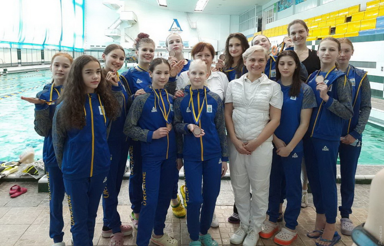 Сборная Одесской области завоевала бронзу чемпионата Украины по синхронному плаваниюБронзовые медали чемпионата Украины по артистическому (синхронному) плаванию завоевала сборная Одесской области. Первенство прошло в Харькове, сообщает региональное отделение НОК Украины. Одесские спортсменки заняли третье место в произвольной программе среди комбинированных групп, набрав 73,0667 балла. Сборную Николаевской области, которая стала четвертой, одесситки опередили на 1,0667 балла. Возраст спортсменок — от 11 до 15 лет. Они представляют две одесские спортшколы: областную ДЮСШ — Мария Богданова, Таисия Почепинская, Регина Першина, Алиса Подгурская, Маргарита Савченко, Александра Жайворонок, Юлия Рерак, Анастасия Зелинская, и СДЮСШОР «Черноморец» — Татьяна Давискиба, Владислава Качерба и Анна Харченко. К чемпионату Украины комбинированную группу готовили Екатерина Подгурская-Дорогова и Вера Голубова. Также в этом виде выступала и вторая сборная Одесской области, которая, заняв седьмое место, также принесла очки нашему региону. В активе одесских синхронисток и два четвертых места: Марии Богдановой в соло и дуэта Марии Богдановой и Татьяны Давискиба, который проиграл всего 0,3 балла киевлянкам. Тем не менее спортсменки выполнили норматив мастера спорта Украины. СМЕРТЬ РОСІЙСЬКИМ ОКУПАНТАМ! Помітили помилку? Виділяйте слова з помилкою та натискайте control-enter |