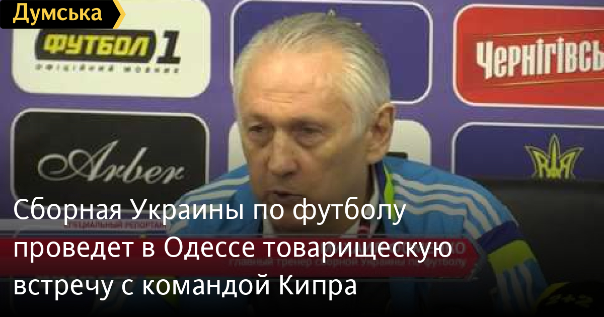 Сборная Украины по футболу проведет в Одессе товарищескую встречу с командой КипраБольшой футбол в Одессе. В четверг ровно в 9 вечера национальная сборная Украины будет принимать на поле стадиона «Черноморец» команду Кипра. Это четвертая игра украинской сборной в нашем городе за всю историю. В трех первых украинская сборная одерживала победы СМЕРТЬ РОССИЙСКИМ ОККУПАНТАМ! Заметили ошибку? Выделяйте слова с ошибкой и нажимайте control-enter Думская ТВ. Сюжеты: