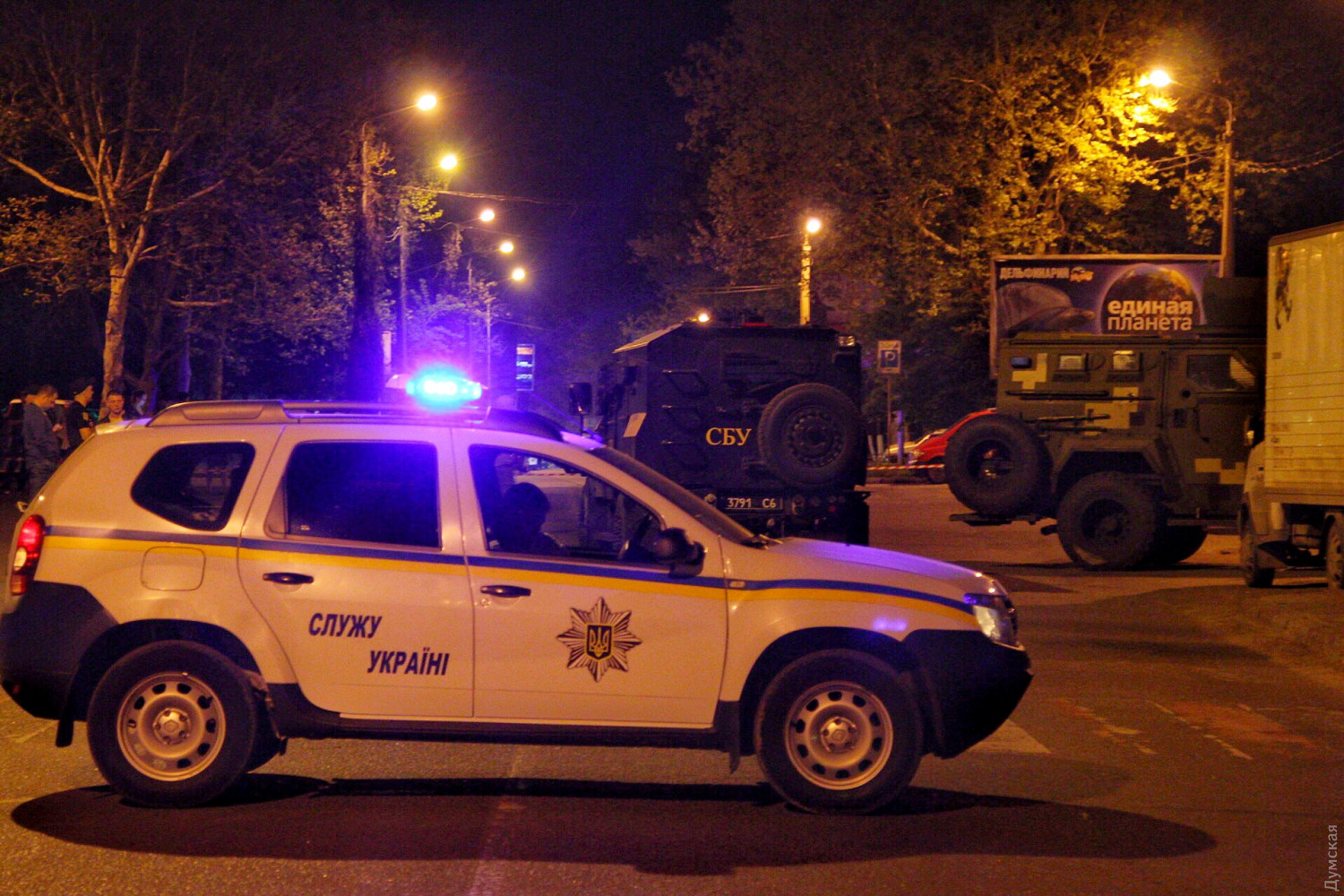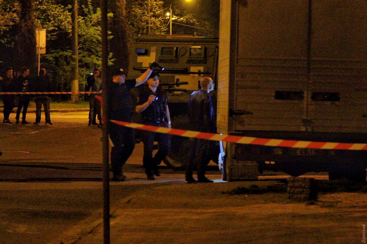 СБУ и полиция проверяют автомобиль возле парка Горького в Одессе: идут учения (обновляется)Сотрудники полиции перекрыли Варненскую улицу в Одессе рядом с парком Горького. Как сообщают очевидцы, на месте замечены сотрудники Службы безопасности Украины, специальная и бронированная техника. По предварительным данным, причиной переполоха стал припаркованный возле кинотеатра «Москва» автомобиль, на который обратила внимание служебная собака. Четвероногий служитель закона отреагировал на транспорт так, как если бы учуял взрывчатку. На месте работают взрывотехники. ОБНОВЛЕНО в 21:57. Как сообщил «Думской» советник начальника Главного управления Национальной полиции Украины Руслан Форостяк, переполох с заминированной машиной — учения силовиков. ОБНОВЛЕНО в 22:10. Автобус с наклейкой «СБУ» покинул место учений, зато прибыли автомобили скорой помощи и ГСЧС. ОБНОВЛЕНО в 22:49. Силовики дождались появления хозяина автомобиля и вместе открыли водительскую дверь авто. До этого правоохранители ничего не предпринимали. Автомобиль — фургон. ОБНОВЛЕНО в 23:00. Взрывотехники обследуют кузов грузовика. ОБНОВЛЕНО в 23:10. Силовики разъезжаются с места событий, похоже никакой взрывчатки не нашли. СМЕРТЬ РОСІЙСЬКИМ ОКУПАНТАМ! Помітили помилку? Виділяйте слова з помилкою та натискайте control-enter |