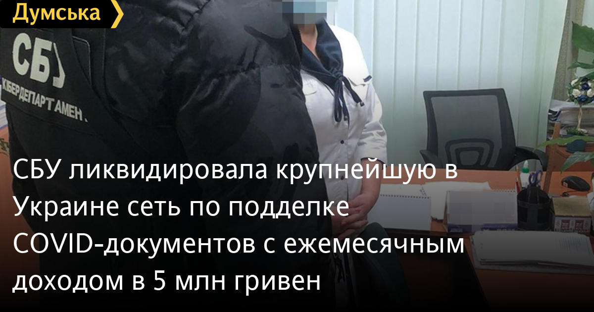 СБУ ликвидировала крупнейшую в Украине сеть по подделке COVID-документов с ежемесячным доходом в 5 млн гривенКрупнейшую в Украине сеть по изготовлению фейковых сертификатов о COVID-вакцинации ликвидировала СБУ в Киеве. Как сообщили в ведомстве, «прибыль» злоумышленников составляла более 5 млн грн ежемесячно. Они подделывали международные свидетельства о вакцинации от COVID-19 для людей, не желающих делать прививку. Как установило следствие, противоправную деятельность организовали два жителя столицы, которые привлекли нескольких руководителей медучреждений и шестерых семейных врачей из разных регионов страны. Медработники за деньги вносили данные клиентов в электронную систему eHealth для дальнейшей загрузки в «Дію». Продолжается досудебное расследование для установления всех обстоятельств незаконной деятельности и привлечения к ответственности других лиц, причастных к ней. СМЕРТЬ РОССИЙСКИМ ОККУПАНТАМ! Заметили ошибку? Выделяйте слова с ошибкой и нажимайте control-enter |