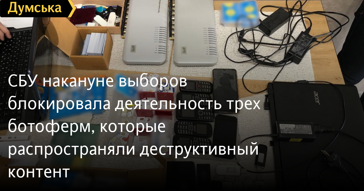 СБУ накануне выборов блокировала деятельность трех ботоферм, которые распространяли деструктивный контентСотрудники Службы безопасности Украины разоблачили и блокировали накануне выборов деятельность трех ботоферм, которые распространяли деструктивный контент. Об этом сообщила пресс-служба СБУ. Действовали эти ботофермы в Николаеве и Ивано-Франковске. Оперативники установили, что в Николаеве с начала предвыборной кампании злоумышленники начали через две ботофермы активно размещать материалы для дискредитации действующей государственной и областной властей. Максимальная активизация распространения деструктивных материалов планировалась накануне и непосредственно в день проведения местных выборов. Для распространения ложной информации они использовали ряд бот-аккаунтов. Работали указанные ботофермы через российскую веб-платформу. По версии следствия, один из злоумышленников также администрировал в соцсетях группы с общей аудиторией более 300 тысяч участников. Там он размещал материалы, которые, согласно заключению лингвистической экспертизы, содержали призывы к изменению границ территории или границ Украины. В рамках открытого уголовного дела силовики изъяли компьютерную технику, средства связи и символику страны-агрессора. Также изъято оборудование ботоферм — пять сим-банков на 32 порта каждый, почти четыре тысячи сим-карт операторов связи. Устанавливаются возможные связи фигурантов с кураторами из спецслужб РФ. В Ивано-Франковске местный житель через ботоферму на протяжении трех лет предоставлял заказчикам услуги по созданию десятков тысяч фейковых профилей в соцсетях и мессенжерах. Накануне местных выборов в Украине клиентами злоумышленника стали преимущественно абоненты из РФ. Они использовали анонимные профили для незаконного влияния на общественное мнение, распространение недостоверной и деструктивной информации. Во время обыска по месту работы злоумышленника силовики изъяли два VoIP шлюзы, семь USB-модемов, более тысячи сим-карт и компьютер, с которого он осуществлял управление ботофермой. По данному факту также открыто уголовное дело. СМЕРТЬ РОССИЙСКИМ ОККУПАНТАМ! Заметили ошибку? Выделяйте слова с ошибкой и нажимайте control-enter |