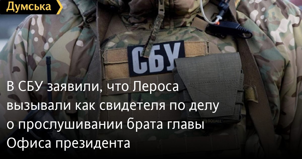 В СБУ заявили, что Лероса вызывали как свидетеля по делу о прослушивании брата главы Офиса президентаСлужба безопасности Украины расследует уголовное производство по факту незаконного прослушивания брата главы Офиса президента Дениса Ермака. Об этом сообщила пресс-служба СБУ. «Главное следственное управление СБ Украины осуществляет досудебное расследование в уголовном производстве по факту незаконного использования специальных технических средств негласного получения информации для видео-фиксации встреч Дениса Ермака, то есть преступления, предусмотренного ч. 2 ст. 359 Уголовного кодекса Украины», — сказано в сообщении ведомства. Дело было возбуждено после того, как нардеп от «Слуги народа» Гео Лерос обнародовал видео, на которых брат главы Офиса президента, якобы продает государственные должности. В СБУ отметили, что явились сегодня к Леросу домой, чтобы вручить повестку о вызове на допрос в качестве свидетеля в указанном уголовном деле, но он отказался ее принять и предложил обратиться к его адвокату. Напомним, что после обнародования видеозаписей нардепом Андрей Ермак обратился в Государственное бюро расследований, которое открыло дело в отношении Лероса сразу по четырем статья. СМЕРТЬ РОССИЙСКИМ ОККУПАНТАМ! Заметили ошибку? Выделяйте слова с ошибкой и нажимайте control-enter |