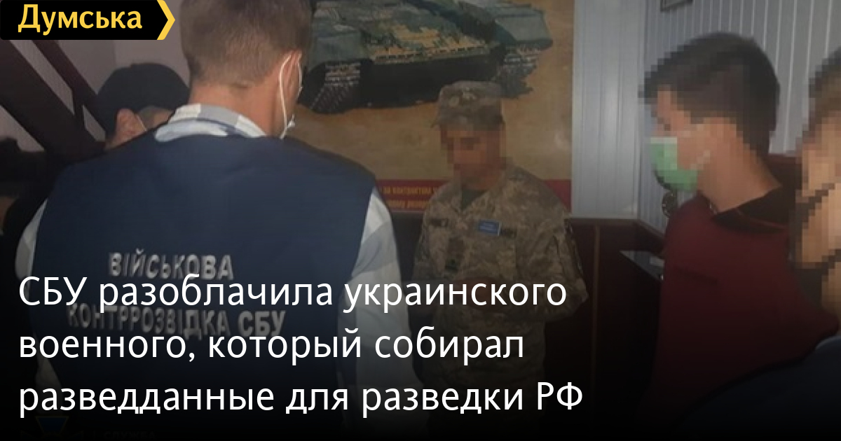 СБУ разоблачила украинского военного, который собирал разведданные для разведки РФДепартамент военной контрразведки Службы безопасности Украины в Ровенской области разоблачил украинского военнослужащего, который собирал разведданные для военной разведки РФ. Представителей российских спецслужб интересовала информация о мобилизации. Об этом сообщила пресс-служба СБУ. По предварительным данным, к противоправной деятельности военного привлек его родственник, который является кадровым офицером Вооруженных сил РФ. По заданию кураторов агент собирал секретную информацию в сфере обороны нашего государства. Для хранения и переправки разведывательных данных за границу он использовал удаленные серверы хранения данных и мессенджеры. Сотрудники СБУ задержали военнослужащего при попытке незаконной передачи сведений о мобилизации. Задержанному объявлено о подозрении по ч. 1 ст. 111 (государственная измена) УК Украины. Планируется избрание меры пресечения. Следственные действия продолжаются. СМЕРТЬ РОССИЙСКИМ ОККУПАНТАМ! Заметили ошибку? Выделяйте слова с ошибкой и нажимайте control-enter |