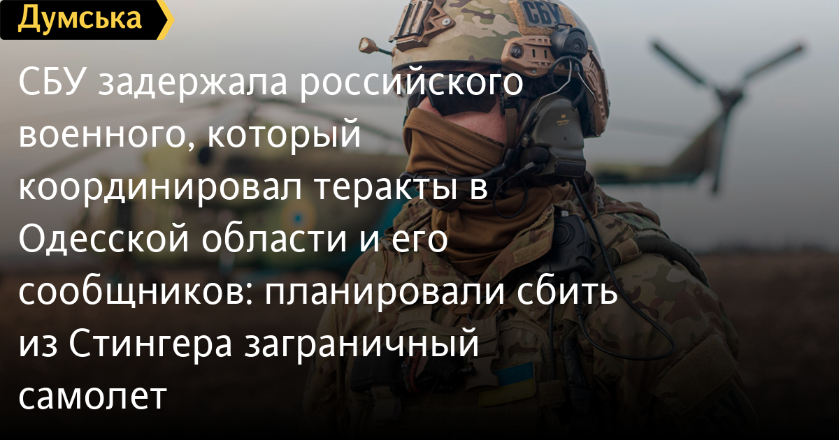 СБУ задержала российского военного, который координировал теракты в Одесской области и его сообщников: планировали сбить из «Стингера» заграничный самолетОперативники Службы безопасности Украины успешно провели сложную, многоступенчатую операцию по разоблачению вражеской агентуры и недопущению проведения провокации, в которой россияне хотели обвинить украинских «диверсантов». По данным СБУ, российские агенты планировали заполучить и вывезти из Украины американский переносной зенитно-ракетный комплекс Stinger, с помощью которого хотели сбить пассажирский самолет над рф или другим государством, а затем обвинить в атаке украинских «диверсантов». Установлено, что операцией руководил кадровый российский военный, сотрудник главного управления генерального штаба рф Александр Тюдорев с позывным «Морпех». Ему подчинялись два агента с двойным гражданством и завербованный в Украине сообщник. Они выдавали себя за патриотических волонтеров и пытались втереться в доверие к украинским военнослужащим. Для этого ранее они несколько раз «сливали» достоверные данные о перемещениях и месте дислокации кадыровцев, что позволяло украинским войскам наносить по ним удары. Позже агенты попытались заполучить «Стингер» и вывезти его из Украины. Всех участников группировки вместе с Тюдоревым удалось задержать. Сейчас их допрашивают. В СБУ отметили, что благодаря этой операции удалось выяснить уровень деградации разведывательных и диверсионных подразделений российской армии. Ранее «Морпех» координировал серию терактов в Одесской области, недавно же он стал врать руководству и фальсифицировать данные о новых «диверсиях» в Украине. В том числе, он вместе с сообщниками планировал разыграть на камеру нападение на блокпост территориальной обороны. СМЕРТЬ РОССИЙСКИМ ОККУПАНТАМ! Заметили ошибку? Выделяйте слова с ошибкой и нажимайте control-enter |