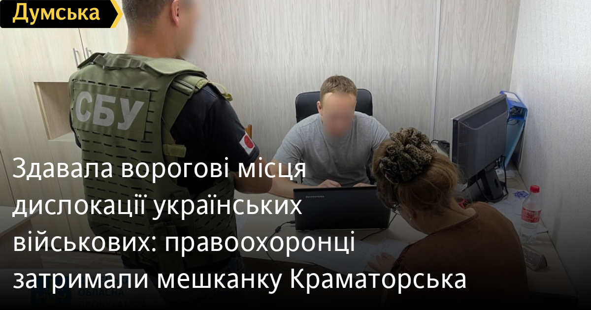 Правоохоронці повідомили про підозру мешканці Краматорська Донецької області, яка передавала ворогам місця дислокації українських військовослужбовців.