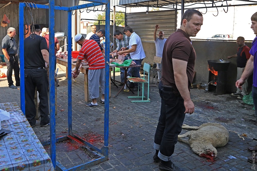 В одной из одесских мечетей, на Балковской, для жертвоприношения приготовили два десятка овец.
