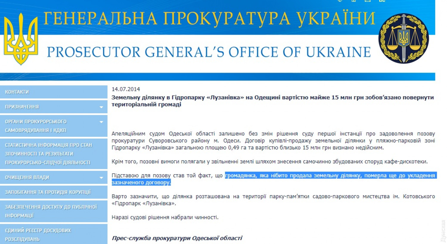 Бывшие чиновники и правоохранители пытаются украсть у городской громады Одессы почти полгектара (0,49 га) земли в курортной зоне Лузановки — тот самый участок на берегу моря, где в 2013 году выросло уродливое здание «дискотеки», которое разрушил тогдашний мэр Алексей Костусев (он любил такие спектакли). Как выяснила «Думская», в октябре 2018 года коммунальное предприятие Новоселовского сельсовета Березовского района Одесской области (!) зарегистрировало право собственности на эту землю за формальным владельцем руин дискотеки — компанией «ЕЛІТ ЛЕНД АПАРТ». В декабре 2019 года этой ситуацией в очередной раз заинтересовались правоохранители, которые вспомнили, что заключенный в далеком 2006 году договор купли-продажи земли парка-памятника садово-паркового искусства, на основании которого она ушла в частную собственность, был отменен судом как незаконный: женщина, которая якобы продала участок, умерла еще до заключения указанного договора. Регистраторы Новоселовки Березовского района внесли информацию в реестр, использовав этот самый, отмененный, договор, то есть совершили уголовное преступление. 18 декабря 2019 года Суворовский отдел полиции Одессы открыл по данному факту уголовное производство. Случившееся квалифицировали по ст. 197-1 УК Украины («самовольное занятие земельного участка и самовольное строительство»). Следователь обратился в суд с ходатайством о наложении ареста на землю, которое было удовлетворено в марте 2020 года. Надо сказать, что когда Костусев сносил дискотечный недострой, фирма «ЕЛІТ ЛЕНД АПАРТ», принадлежала только семье бывшего высокопоставленного милиционера Виктора Балана. В свое время этот человек возглавлял Суворовский и Киевский райотделы внутренних дел, трудился в УБОПе и других милицейских подразделениях, а потом успел поработать в Главном управлении юстиции в Одесской области. Сейчас директором компании является его сын Виталий, а среди учредителей присутствует некая Балан Татьяна Игоревна. Кроме того, совладельцами числятся владелец «Крыжановской строительной компании» Сергей Кимуржи и Чердынцева Татьяна Васильевна. СМЕРТЬ РОСІЙСЬКИМ ОКУПАНТАМ! Помітили помилку? Виділяйте слова з помилкою та натискайте control-enter Новини по цій темі: 6 листопада 2024: Спроба №... Готель-барак на схилі 13-го Фонтану в Одесі все ж визнали незаконним, але боротьба за нього триває 26 листопада 2024: Через кримінальне провадження до продажів: узаконений нахаббуд на одеському узбережжі перетворюється на елітний житловий комплекс (фото) 30 вересня 2024: Одеська прокуратура наполягає на перегляді великої земельної приватизації часів Гурвіца: вимагає повернути землю біля моря 29 липня 2024: Власники закладів в одеській Отраді стверджують, що вже знесли літній майданчик, який збиралася демонтувати мерія (фото) 25 липня 2024: Мерія Одеси хоче демонтувати літні майданчики на Ланжероні та в Отраді: екснардеп зніс усе сам (обновлено) |