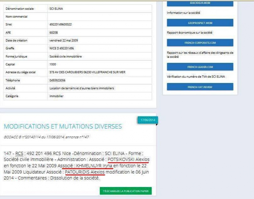 В Сети появилась информация о том, что семья мэра города Черноморск Одесской области Валерия Хмельнюка владеет виллой на юго-востоке Франции, которую городской голова «забыл» указать в декларации. Об этом активисты сообщают в Facebook-группе «Черноморск». «По информации о владельцах французской фирмы «SCI ELINA» из французского же реестра, фирма принадлежит Алексею Почиковскому-Патуриду и его партнеру Хмельнюк Ирине, дочери Хмельнюка. Там же видно, что данной фирме принадлежит недвижимость во Франции (между Ниццей и Монако, — Ред.)», — говорится в сообщении. Сам Валерий Хмельнюк, отвечая на вопросы журналистов об этой недвижимости, все отрицает и называет эту информацию бредом. СМЕРТЬ РОСІЙСЬКИМ ОКУПАНТАМ! Помітили помилку? Виділяйте слова з помилкою та натискайте control-enter