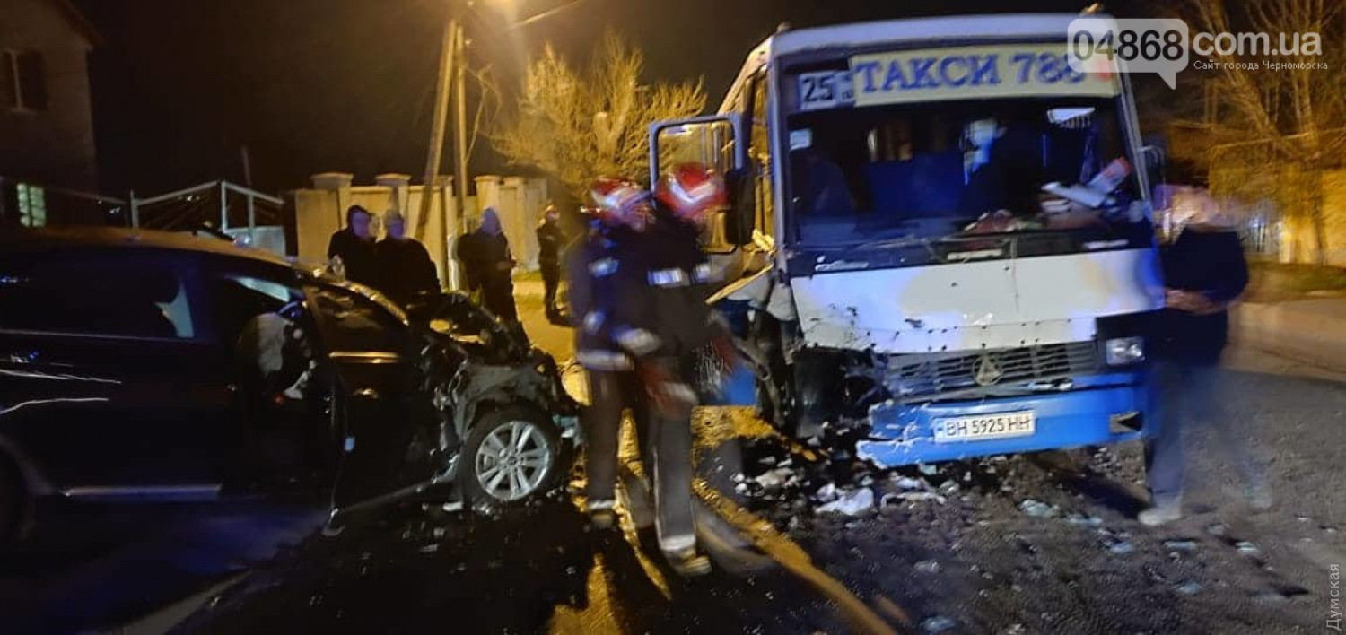 Серьезное ДТП у Черноморска: легковой автомобиль врезался в маршрутку с людьми