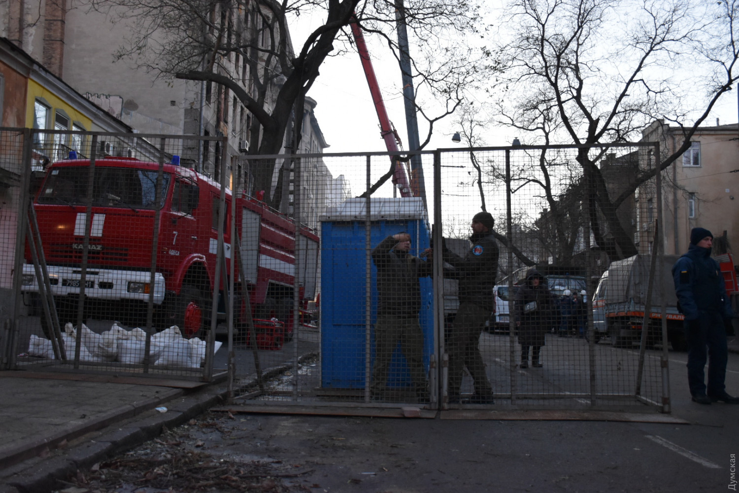 Сгоревший дом Асвадурова на Троицкой улице обносят забором, передает корреспондент «Думской». Это делается, чтобы уберечь место происшествия, где ведется поиск тел погибших и следственные действия, от посторонних. Движение по Троицкой будет закрыто до окончания всех работ. В связи с этим, как сообщает «Одесгорэлектротранс», внесены изменения в схемы движения троллейбусных маршрутов. Так, троллейбус №1 пока ходить не будет, а пятерка будет ездить только до железнодорожного вокзала. Маршрут №7 будет таким: - в направлении движения к ул. Л. Толстого — от Итальянского бул. на Привокзальную площадь (железнодорожный вокзал), ул. Пушкинскую, ул. Греческую, ул. Ришельевскую, ул. Бунина, площадь Веры Холодной, Соборную площадь, ул. Л. Толстого, пл. Л. Толстого; - в направлении движения к ул. Архитекторской — от пл. Л. Толстого на ул. Л. Толстого, Соборную площадь, площадь Веры Холодной, ул. Бунина, ул. Ришельевскую, ул. Водопроводную, Итальянский бул., ул. Среднефонтанскую и далее по маршруту. СМЕРТЬ РОСІЙСЬКИМ ОКУПАНТАМ! Помітили помилку? Виділяйте слова з помилкою та натискайте control-enter Новини по цій темі: 4 грудня 2021: Два года с момента трагедии: возле сгоревшего дома Асвадурова почтили память погибших 29 жовтня 2021: "Ноосфера" и "Борис Александров": переданные Украине научно-исследовательские суда получили новые названия 21 квітня 2021: «Мне, правда, страшно банально»: любитель Путина Моргенштерн, оскандалившийся на концерте в Одессе, отменил свой тур по Украине |