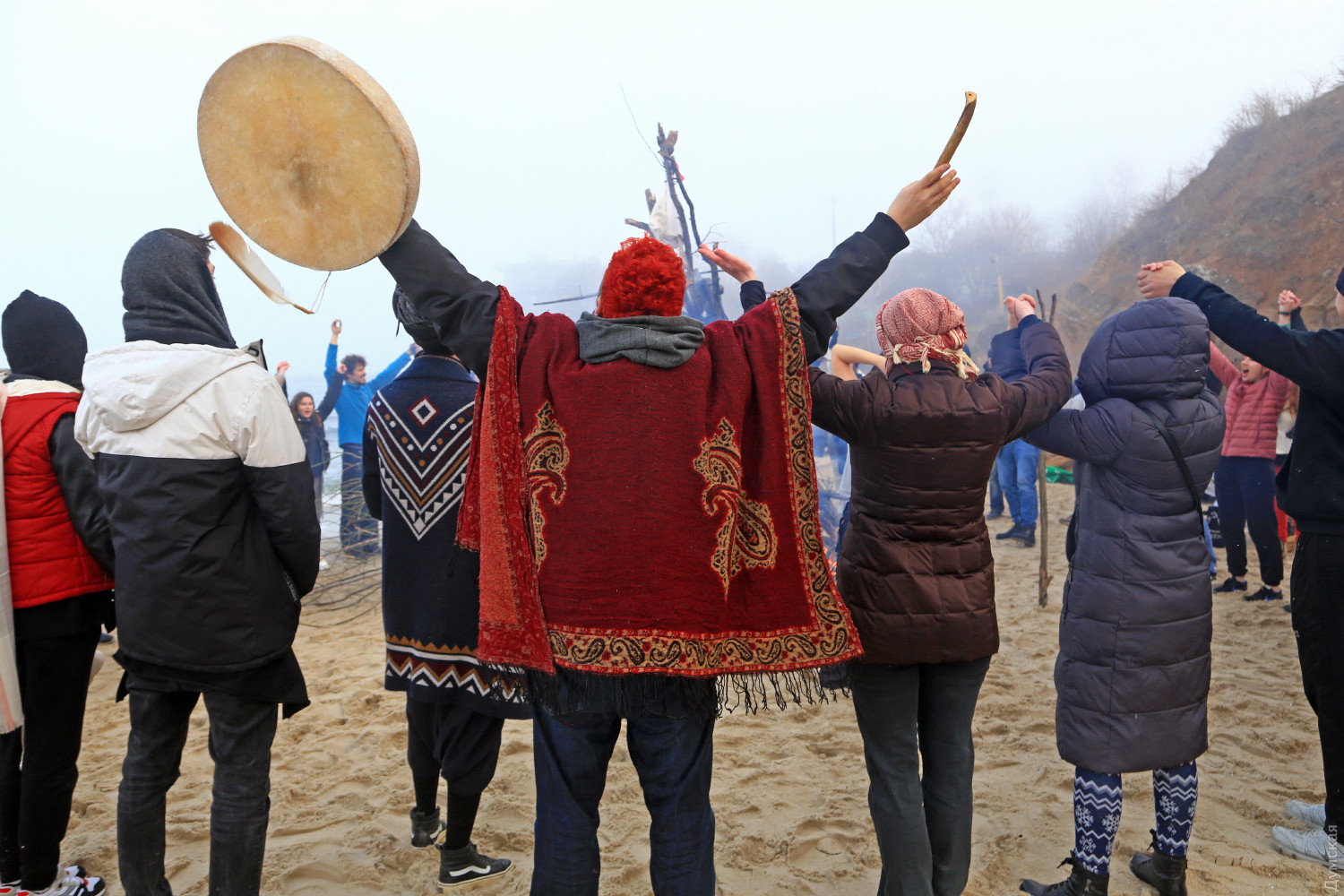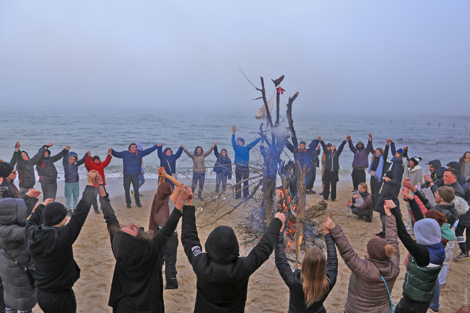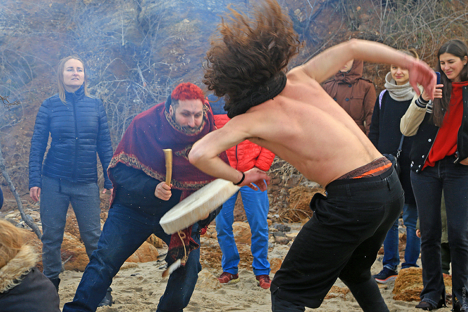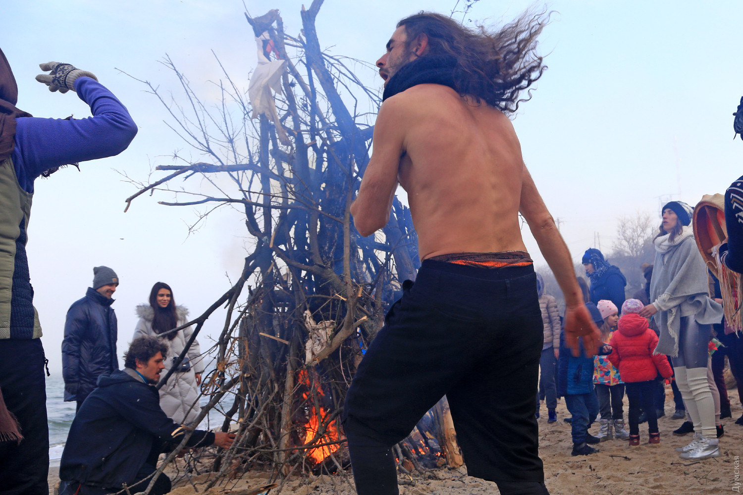Едкий дым от сырого костра, смешавшись с туманом, заполнил небольшой кусок пляжа. Полсотни людей, взявшись за руки словно на картине Матисса, ведут хоровод вокруг пламени. Резкие звуки варгана, схлестнувшись с бубном, гонят двуногих в безумном ритме. Вечерние посетители Собачьего пляжа сегодня стали свидетелями большого представления — группа молодежи устроила свой, отличный от традиционного, обряд прощания с зимой. Получилось почти по театральному, и это не удивительно, ведь лидер группы, некто Андрей, рассказал, что ведет несколько театральных проектов и, якобы, даже работает режиссером. По словам Андрея, иногда они отмечают прощание с зимой другим обрядом. Перед обрядом группа плетет мотанки — своеобразные куклы из сена, олицетворяющие прошлое человека, которое должно уйти. Мотанка у каждого своя и каждый должен сжечь ее в костре. «В нашей версии праздника нет ничего демонического, но мы привыкли так его справлять. Есть костяк группы, мы все друзья, у нас свой стиль и свои правила. В общем, это очень похоже на традиционный праздник, но есть отличия», — подчеркнул главный шаман. Сначала ребята разогревались вокруг хвороста под звуки бубна, минут через 20 зажгли костер и всем стало немного теплее. С каждой минутой ритм нарастал, включился варган, танец стал более яростным, Андрей разделся и бросил свитер в огонь, таким образом расставшись с прошлым. Каждый что-то сжигал, но взамен что-то просил у своего бога. Сверху на краю обрыва собралось несколько десятков зрителей, которые с интересом наблюдали за необычным действом. Обряд закончился — костер догорел, остановились там-тамы, а участники принялись обсуждать свою Масленицу, открыв термосы с чаем. Фото Сергея Смоленцева СМЕРТЬ РОСІЙСЬКИМ ОКУПАНТАМ! Помітили помилку? Виділяйте слова з помилкою та натискайте control-enter |