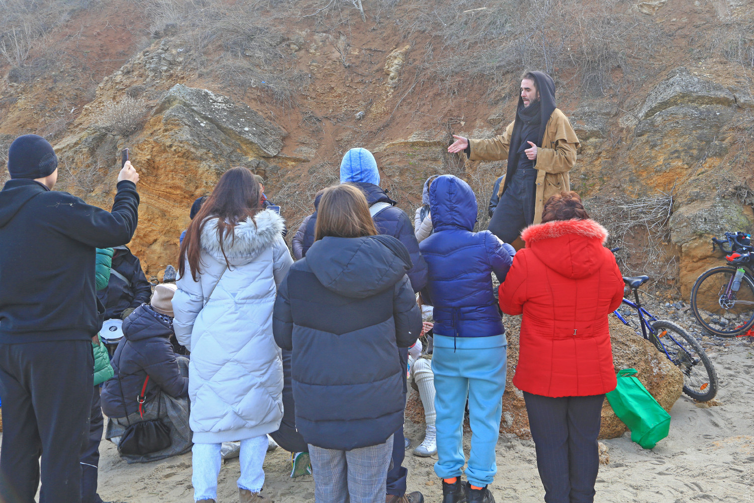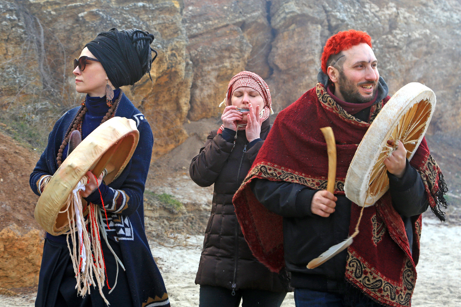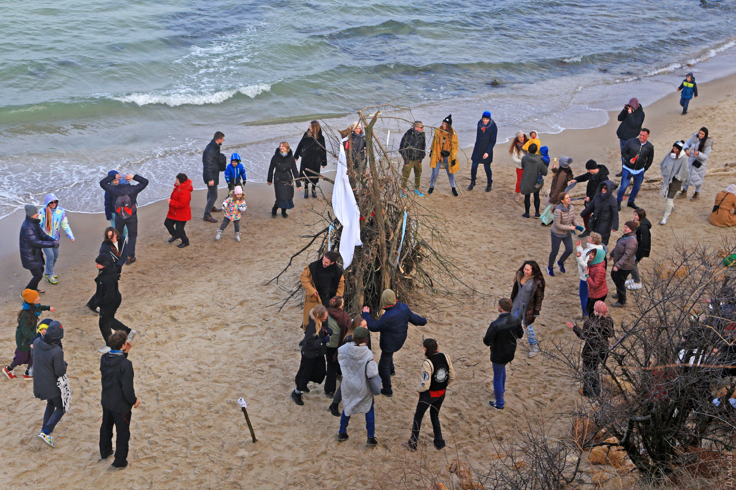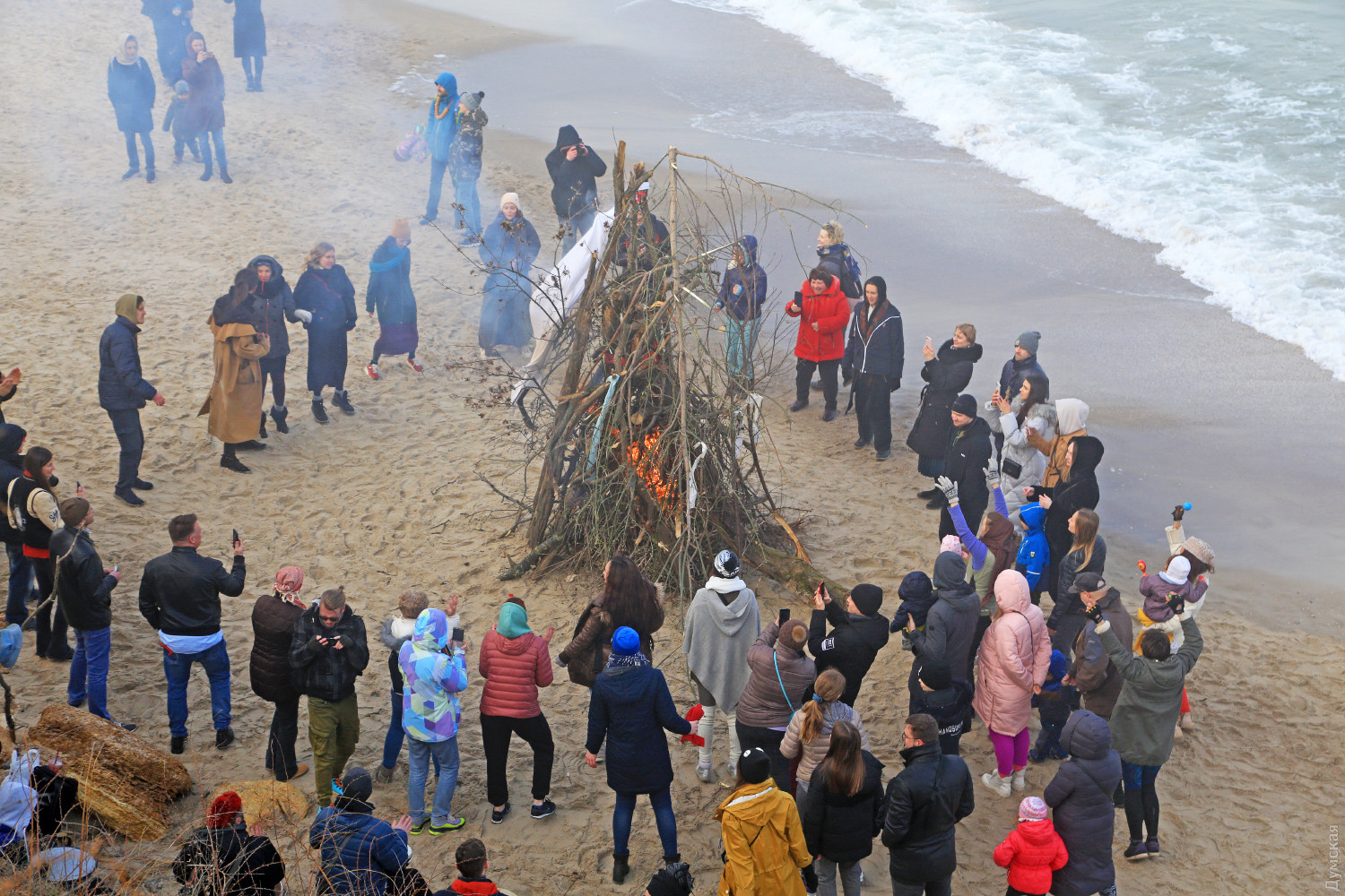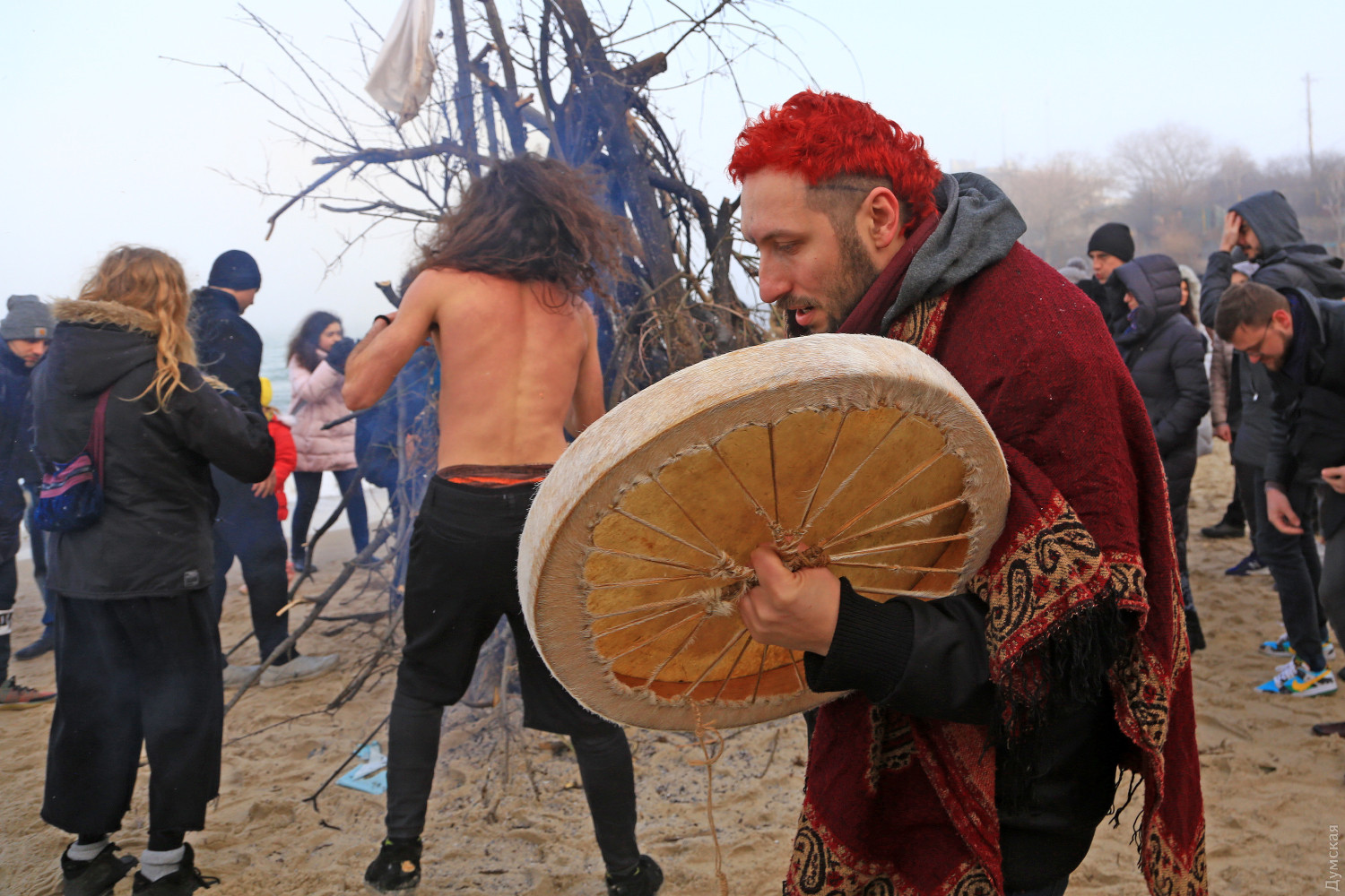Едкий дым от сырого костра, смешавшись с туманом, заполнил небольшой кусок пляжа. Полсотни людей, взявшись за руки словно на картине Матисса, ведут хоровод вокруг пламени. Резкие звуки варгана, схлестнувшись с бубном, гонят двуногих в безумном ритме. Вечерние посетители Собачьего пляжа сегодня стали свидетелями большого представления — группа молодежи устроила свой, отличный от традиционного, обряд прощания с зимой. Получилось почти по театральному, и это не удивительно, ведь лидер группы, некто Андрей, рассказал, что ведет несколько театральных проектов и, якобы, даже работает режиссером. По словам Андрея, иногда они отмечают прощание с зимой другим обрядом. Перед обрядом группа плетет мотанки — своеобразные куклы из сена, олицетворяющие прошлое человека, которое должно уйти. Мотанка у каждого своя и каждый должен сжечь ее в костре. «В нашей версии праздника нет ничего демонического, но мы привыкли так его справлять. Есть костяк группы, мы все друзья, у нас свой стиль и свои правила. В общем, это очень похоже на традиционный праздник, но есть отличия», — подчеркнул главный шаман. Сначала ребята разогревались вокруг хвороста под звуки бубна, минут через 20 зажгли костер и всем стало немного теплее. С каждой минутой ритм нарастал, включился варган, танец стал более яростным, Андрей разделся и бросил свитер в огонь, таким образом расставшись с прошлым. Каждый что-то сжигал, но взамен что-то просил у своего бога. Сверху на краю обрыва собралось несколько десятков зрителей, которые с интересом наблюдали за необычным действом. Обряд закончился — костер догорел, остановились там-тамы, а участники принялись обсуждать свою Масленицу, открыв термосы с чаем. Фото Сергея Смоленцева СМЕРТЬ РОСІЙСЬКИМ ОКУПАНТАМ! Помітили помилку? Виділяйте слова з помилкою та натискайте control-enter |