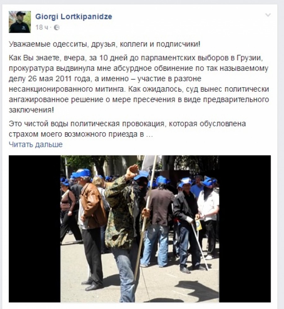 Руководитель полиции Одесской области Георгий Лорткипанидзе связывает решение Тбилисского городского суда, который санкционировал его арест, с парламентскими выборами в Грузии. Об этом правоохранитель написал на своей странице в Facebook.