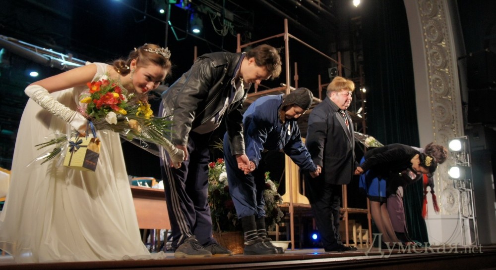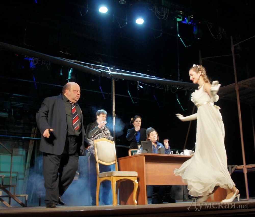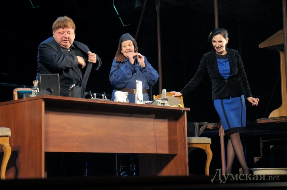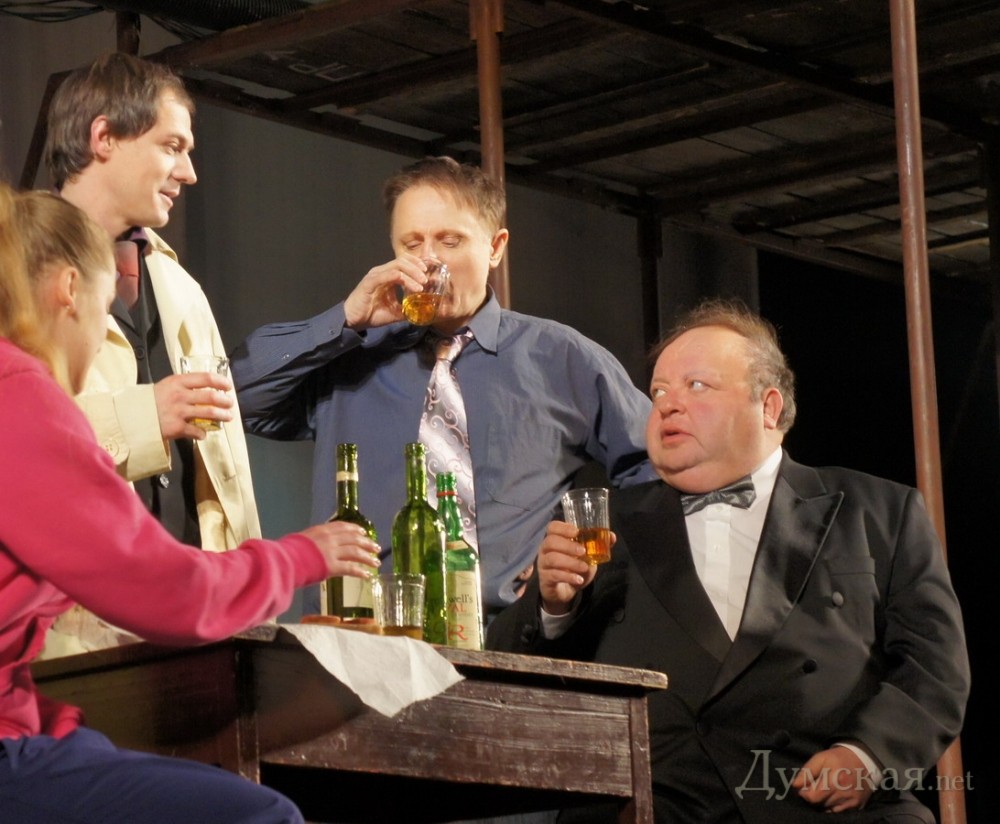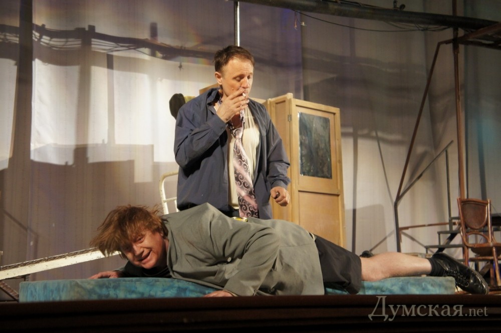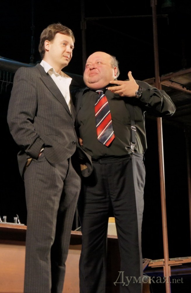 Премьеры в Русском: 2 истории советских запоев, «Бляха-муха» и Шендерович (Фоторепортаж)В последние выходные января одесский зритель, соскучившийся по премьерам в Русском театре, получил сразу два спектакля а одной постановке. Каждая из премьер является одноактовой юмористической зарисовкой – одна из ушедшего 20-го века, вторая – из текущего 21-го века. В театре рассказывают, что «Двадцать минут с ангелом» открывает дверь в ностальгирующий мир быта и человеческих отношений советской эпохи. Начало спектакля, при этом, было очень сумбурным и даже отталкивающим — двое растрепанных мужиков в гостиничном номере пытались прийти в себя после трехдневного запоя, чтобы одолжить у кого-то денег на четвертый день пьянства. Зрителей происходящее определенно забавляло — посетители театра хихикали и смеялись при каждом падении или пьяной выходке героев. К слову, «Двадцать минут с ангелом» — произведение Алесандра Вампилова, одного из самых знаковых русских драматуров ХХ столетия, написана пьеса еще в далеком 1962 году. С этого момента не просто прошли годы — прошли эпохи. Сейчас никто уже не пьет в командировках на последние деньги, позабыв о завтрашнем дне. Героям спектакля наконец-то повезло и вместо нужных им трех рублей на бутылку они получают просто так десять червонцев. Стоит отметить – советские десятки были настоящими потертыми красными червонцами той эпохи, как и пустые пивные бутылки с наклейками «Жигулевское». Казалось бы, проблема решена, но для того времени десять червонцев — слишком большая сумма, чтобы ее дали просто так. Герои решают докопаться до правды, устроив почти партсобрание из жильцов соседних номеров. Истина находится, и за это стоит выпить! После перерыва зрителей ожидала вторая постановка — «Бляха-муха». Это исконно русское выражение, как «Ешкин-кот» и «Екарный бабай», означающее силу и прочность русского духа. За право называться родиной этого выражения выступает город Н в лице своего мэра в исполнении Олега Школьника. Он весь спектакль пьет, пьет и еще раз пьет. У мэра есть две секретарши – одна для ведения всех дел, другая — «крышует» родственника-бандита. Этот спектакль — уже четвёртая совместная работа известного писателя-сатирика Виктора Шендеровича и одесского режиссера Михаила Чумаченко. К слову, на премьеру постановки приехал и сам Шендерович, который под аплодисменты зрителей вышел на сцену после спектакля. Текст и фото: Николай Вдовенко СМЕРТЬ РОСІЙСЬКИМ ОКУПАНТАМ! Помітили помилку? Виділяйте слова з помилкою та натискайте control-enter |
