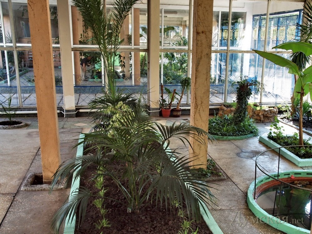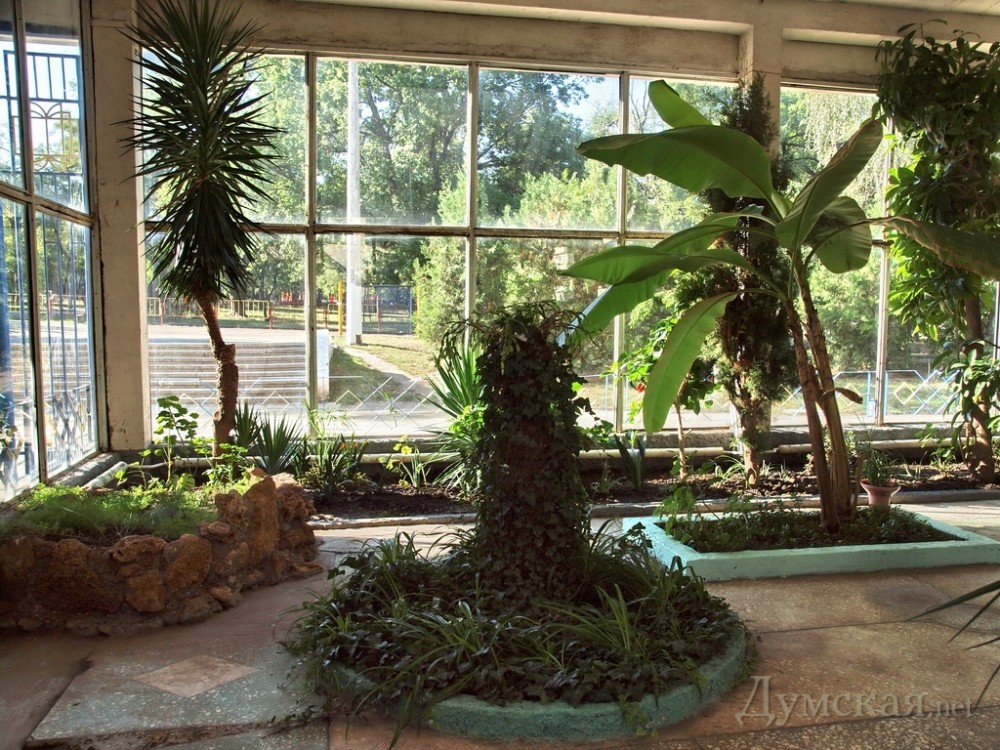 «Думская» продолжает в преддверии Дня знаний рассказывать вам о самых интересных школах и педагогах нашего города. Так уж повелось, что наибольшая концентрация оригинальных учебных заведений в Одессе – на Молдаванке. В частности, на Болгарской улице расположена самая многонациональная школа страны, где учатся представители свыше 120 этнических групп. Но о ней – в следующий раз. Сегодня же наше повествование – о школе №1, что на Михайловской площади, которая может похвастаться собственным зимним садом с самыми экзотическими растениями. На Молдаванке по заданию вашей редакции побывал корреспондент Александр Вельможко. Общеобразовательная школа №1 ведет свою историю аж с 1874 года. Пережив две мировые и гражданскую войны, сталинские репрессии и несколько переездов, школа вполне заслуживает почетный первый номер — и старается ему соответствовать. В 1984 году вместо старого, вконец обветшавшего двухэтажного здания на Алексеевской площади для учебного заведения построили новое на Михайловской. Проект был почти индивидуальный — таких школ в Одессе всего три. Более просторное помещение и позволило «единичке» обзавестись зимним садом, ставшим ее, как сейчас говорят, «фишкой». «Инициатива исходила от нашего прежнего шефа – производственного объединения «Холодмаш», — вспоминает учительница биологии с почти тридцатилетним стажем Валентина Кулагина. — Все растения специально заказывали в Никитском ботаническом саду, оттуда же привезли и грунт. Сначала было довольно тяжело — у нас отсутствовал опыт ухода за экзотической флорой. Но помогли сотрудники университетского биофака, селекционного и сельскохозяйственного институтов. Через несколько лет все наладилось — растения зацвели и начали плодоносить». Когда в школе впервые уродили бананы – это было в самом конце восьмидесятых – директору школы Елене Масленко даже предлагали их продавать. «Но бананы у нас - декоративные, в пищу не годятся, так что о бизнесе пришлось забыть», — смеется женщина. Правда, несколько плодов падкие до фруктов школьники все же съели. О последствиях этого опрометчивого шага история умалчивает. Одно время в зимнем саду даже проводили уроки биологии — среди пальм, бананов и кактусов стояли парты, за которыми дети грызли гранит науки о природе, что называется, в полевых условиях. Сейчас там ведутся только практические занятия. «В прошлом году мы участвовали в конкурсе «Растения родного края», — рассказывает восьмиклассница Оксана. — Надо было рассказать о тех растениях, которые растут в наших местах. Мы и рассказали о бананах, кактусах, олеандре. Ведь школа – это и есть наш родной край! Кстати, а вы знаете, что при благоприятных условиях огромные листья бананов вырастают всего за неделю, и жители тропиков используют их как строительный материал — для крыш своих домов?» Посреди зимнего сада расположен небольшой бассейн, в котором живут три черепашки. Но главная гордость «единички» – огромный четырехметровый кактус. Его цветение, которое обычно происходит весной, здесь отмечают как настоящий праздник. «Все аж полыхает желтым цветом, — говорит Валентина Кулагина. – С улицы даже видно. Прохожие оглядываются, мамы с детьми, что гуляют в сквере — обязательно приходят посмотреть». Хватает у школьных садоводов и проблем. «Прежде всего вечно нет средств н