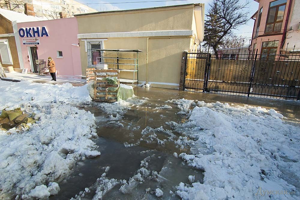 Не дожидаясь ремонтников, одесситы своими силами перегородили место прорыва мешками с песком и направили сток воды на проезжую часть улицы Ефимова. Они опасаются, что лишенные фундамента одноэтажные дома натянут сырость из образовавшегося озера.