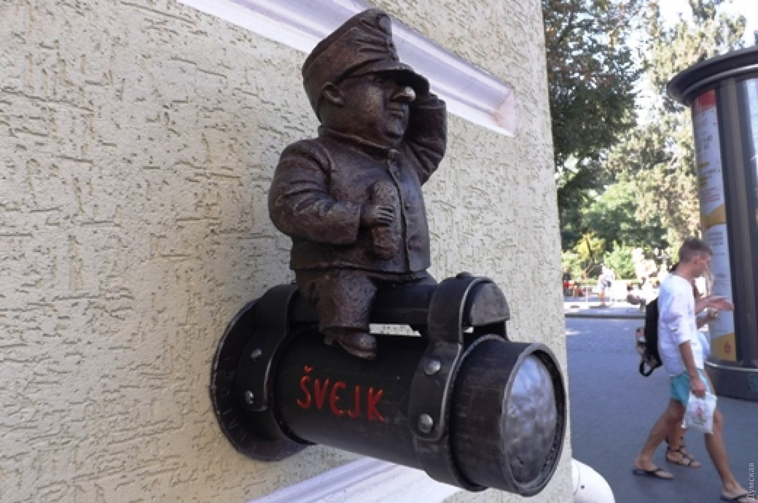 Международный скандал повторяется: фигуру Швейка второй раз похитили со здания одесского «Гамбринуса»Скульптурное изображение известного чешского литературного героя — бравого солдата Швейка — снова похитили. Как сообщил «Думской» постоянный читатель, сегодня он не нашел фигурку Швейка на своем привычном месте — фасаде пивной «Гамбринус» на Вице-Адмирала Жукова. В пресс-службе мэрии нам подтвердили этот факт. «Сейчас готовится обращение в полицию. Надеемся, что можно будет установить личность по видеозаписям камер наружного наблюдения, установленных на близлежащих зданиях»,- сообщили в муниципалитете. Напомним, это уже второе похищение Швейка. Первый раз бравый солдат исчез в апреле 2017-го. Тогда в мэрии заявили, что случившееся — международный скандал, поскольку инициатором установки композиции были представители общества Ярослава Гашека в Чехии. Спустя несколько дней похитительницу удалось задержать. Ранее судимая 30-летняя одесситка принесла краденое в пункт приема металлолома, и там ее задержали. Отметим, Швейк появился в Одессе в День города в 2016 году. Автором одесского Швейка является скульптор Михаил Колодко, который до этого создал две подобные работы — одну в чешском городке Липнице-над-Сазавой, а вторую — в Ужгороде. СМЕРТЬ РОСІЙСЬКИМ ОКУПАНТАМ! Помітили помилку? Виділяйте слова з помилкою та натискайте control-enter |