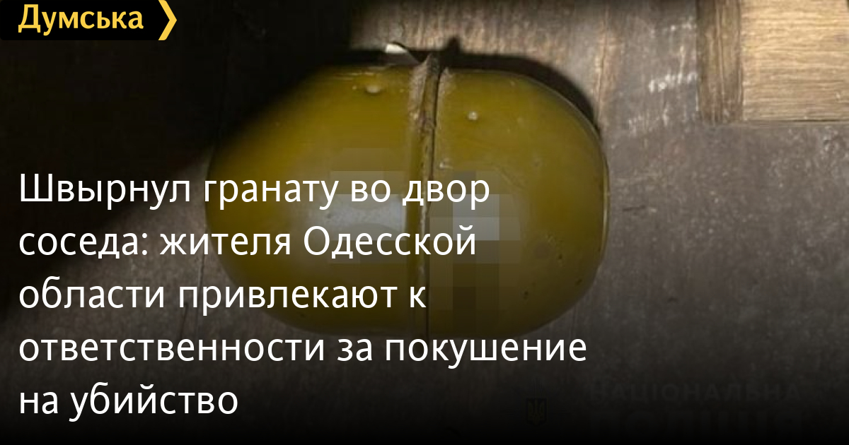 Швырнул гранату во двор соседа: жителя Одесской области привлекают к ответственности за покушение на убийствоЖителя села Дачное Одесского района привлекают к уголовной ответственности за покушение на убийство трех человек. Как сообщили в полиции, инцидент произошел вчера вечером. Нетрезвый 50-летний мужчина вспомнил старые обиды на соседа, бывшего мужа своей сожительницы, и пришел к нему домой ругаться. Хозяин вместе с двумя своими знакомыми, которые были у него в гостях, выставил агрессивно настроенного односельчанина за ворота. Тот достал и швырнул в их сторону боевую гранату РГД-5, предварительно выдернув чеку. К счастью, боеприпас не взорвался. Его обезвредил, отделив запал, один из пострадавших. Полиция оперативно задержала «гранатометчика», который пояснил, что нашел гранату в лесополосе несколько месяцев назад и забрал для самозащиты. СМЕРТЬ РОССИЙСКИМ ОККУПАНТАМ! Заметили ошибку? Выделяйте слова с ошибкой и нажимайте control-enter |