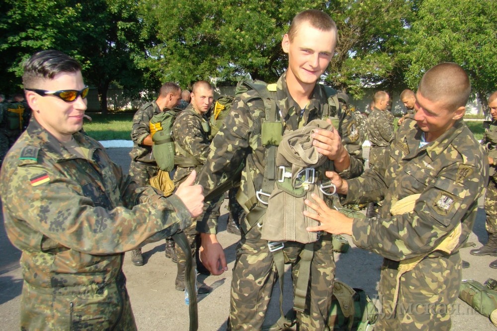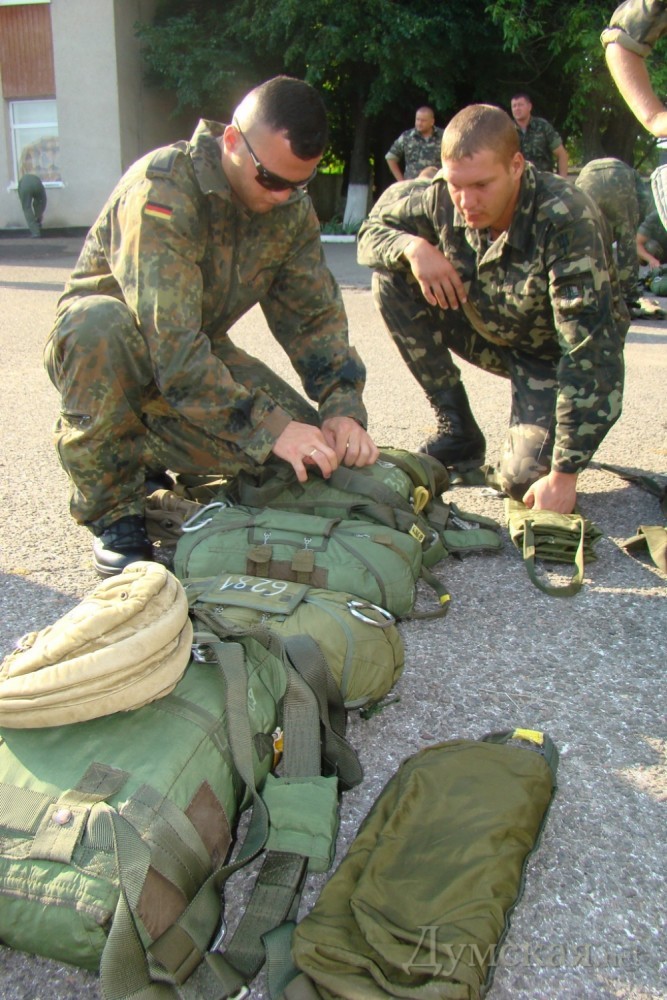 В рамках международных военно-морских учений «Си Бриз-2013» украинские военнослужащие прыгали с парашютами и выполнили ряд тактических задач на полигоне в Чабанке, что под Одессой. В тренировке участвовали разведвзвод 1-го Феодосийского отдельного батальона морской пехоты и аэромобильный взвод 79-й Николаевской отдельной высокомобильной бригады – всего порядка 40 человек. Десантирование осуществлялось на малых высотах с немецкого транспортного самолета С-160, который взлетел со Школьного аэродрома. При этом бойцы использовали парашютную систему бундесвера Т-10 со специальными контейнерами для оружия и снаряжения. Разведвзвод морпехов высадился на площадку, провел разведку местности и определил месторасположение условного лагеря незаконного вооруженного формирования. После этого прямо на головы бандитам высадились «голубые береты», полностью уничтожив базу. Это занятие, по информации пресс-центра Минобороны, является последним этапом подготовки десантников к активной фазе «Си Бриза», которая пройдет на Широколановском общевойсковом полигоне в Николаевской области. Фото Владимира Вивата СМЕРТЬ РОСІЙСЬКИМ ОКУПАНТАМ! Помітили помилку? Виділяйте слова з помилкою та натискайте control-enter |