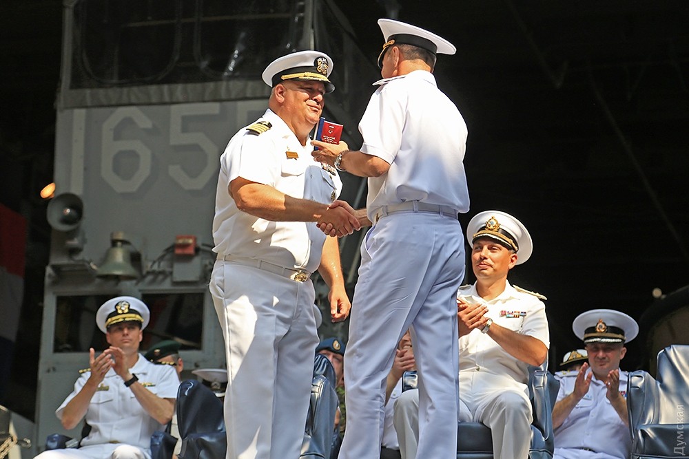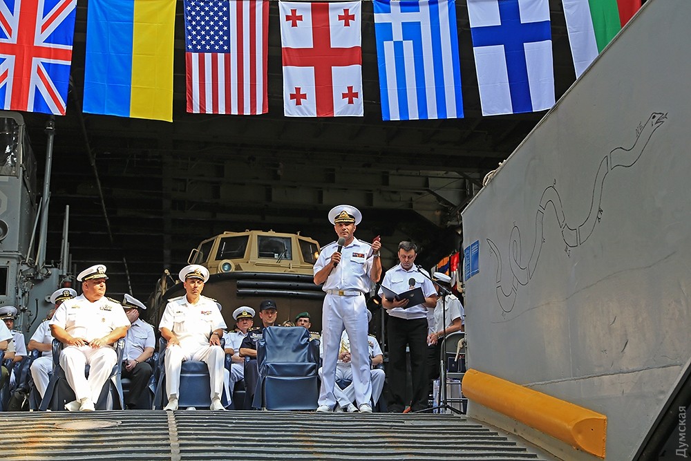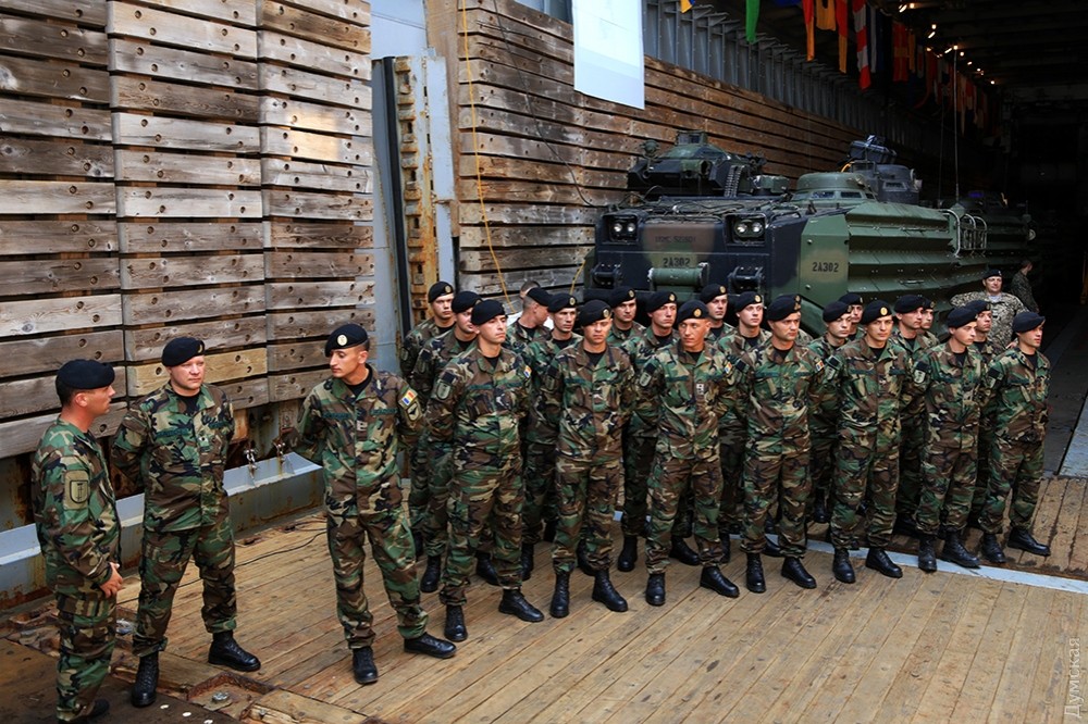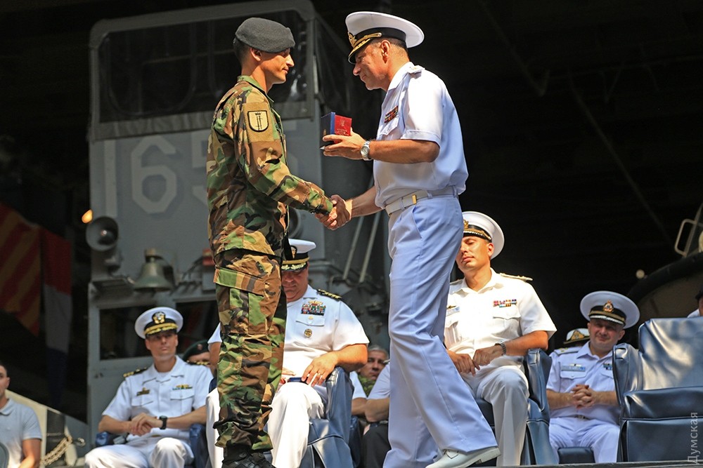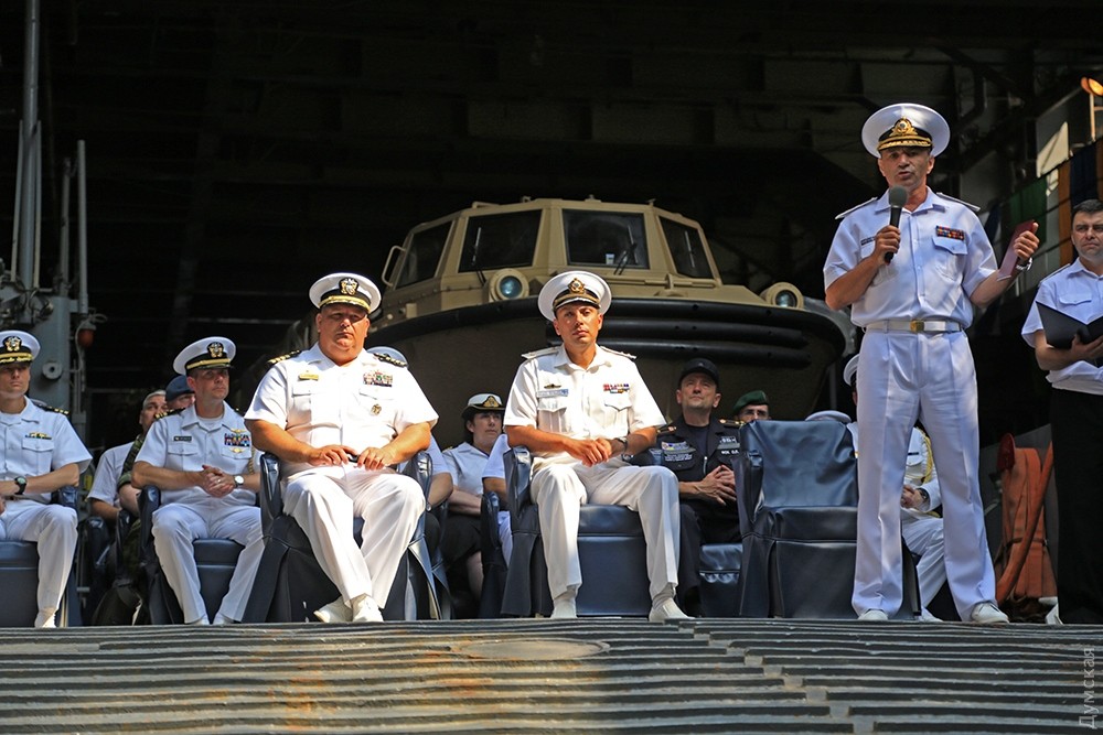 «Си бриз-2016» завершился сегодня подведением итогов на борту американского десантного корабля LSD41 Whidby Island. Церемония проходила на доковой палубе, откуда во время высадки десанта уходят бронированные амфибии с морпехами. . Командующий ВМСУ вице-адмирал Игорь Воронченко взял вступительное слово и подвел краткий итог учениям. По его словам, во время учений корабли стран-участниц прошли 4285 морских миль, десантники совершили 454 прыжка с парашютом и 619 раз высаживались беспарашютным способом. Морские пехотинцы совершили 3 морских и одну речную высадку, два раза форсировали водные преграды. Также участники провели две артиллерийские и 15 стрельб из стрелкового оружия. Авиация совершила 149 полетов с общим налетом 166 часов. Водолазы совершили 137 погружений с общим временем пребывания под водой 75 часов. Игорь Воронченко отметил, что пока не может огласить все подробности учений из соображений секретности, но этот «Си Бриз» интересен новыми подходами в планировании и взаимодействии между партнерами. Руководители учений Ричард Дромерхаузер и Алексей Доскато высоко оценили взаимодействие на суше и на море, а американский руководитель сказал, что итоги превзошли его самые смелые ожидания. Вице-адмирал Игорь Воронченко вручил награды отличившимся военнослужащим США, Украины, Молдовы и Грузии и пожелал им дальнейшей успешной службы. Фото Сергея Смоленцева СМЕРТЬ РОСІЙСЬКИМ ОКУПАНТАМ! Помітили помилку? Виділяйте слова з помилкою та натискайте control-enter Новини по цій темі: 28 червня 2023: Розмінування Чорного моря: екіпажі українських тральщиків навчаються протимінних дій на "Сі Бриз-2023" 22 лютого 2023: Українські військові розвідники використовують американський вертоліт "Блекхоук" (фото) 13 січня 2022: «Си Бриз-2022»: морские пограничники из Одесской области во время учений возьмут под контроль Дунай и Днепр 10 січня 2022: В Одессе начали планировать учения «Си Бриз-2022» 28 грудня 2021: Катер-корвет, противоминные группы и рейд «Дефендера»: НАТО обеспечило постоянное присутствие кораблей в Черном море 29 листопада 2021: В парламенте зарегистрировали неотложный законопроект Зеленского о допуске вооруженных сил других государств на территорию Украины 19 липня 2021: Корабли НАТО покидают Черное море после международных учений |
