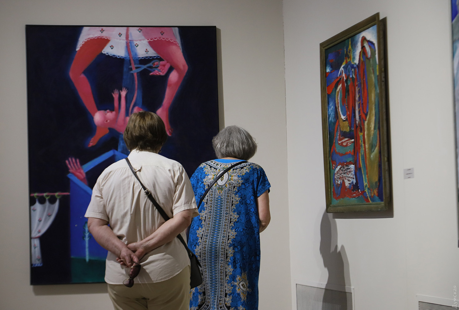 Виставка «Міст Відродження», присвячена 160-річчю Одеського художнього коледжу імені Грекова, одного з найстаріших мистецьких навчальних закладів України, відкрилася в Музеї сучасного мистецтва (Європейська, 31/33). Ця експозиція, що працюватиме до 24 серпня, є спробою осмислити дві хвилі українського культурного Відродження. Вона дає змогу побачити, як викладачі та випускники Греківки» у різні часи зберігали і трансформували мову українського мистецтва. «Через їхні твори проступає не лише художня школа, а й досвід стійкості, пам’яті, оновлення. На цій виставці ми показали, як передавалася з покоління до покоління найважливіша і спільна мета: зберігати мистецтво навіть у найважчі часи, – каже куратор музею Анна Мороховська. – Одні покоління плекали українську культуру за радянської влади, інші вже за часів незалежності України. Команди музею та коледжу запрошують побачити, як Греківка формувала не лише стиль, а й культурну витривалість — здатність мистецтва відповідати на виклики часу, не втрачаючи себе». На трьох музейних поверхах розмістилися живопис, графіка, фото, кераміка (починаючи від славетного Михайла Жука), відео, інсталяції та документи з фондів коледжу, колекції МСМО та з приватних збірок. Кожна генерація розуміє модерністські традиції по-своєму, та творча сміливість залишається незмінною. Спостерігаючи за першими відвідувачами виставки, ми з фотокором помітили, що найдовше глядачі (особливо глядачки) затримуються перед картиною Інни Хасілєвої, на якій школярка народжує немовля просто у сміттєвий бак заради економії часу. На такий сюжет авторку наштовхнули реальні події за участю горе-матерів. Публіка відчуває сатиричну потужність цього яскравого та масштабного полотна. «Ми зібрали в одному місці такі потужні мистецькі твори, особисто я вражена тим, як музей взяв на себе сміливість і зробив експозицію на найвищому рівні, – каже кераміст та співкуратор виставки Олена Жернова. – Витягати себе з метушні та страждань буденності наразі дуже потрібно, виставка цьому сприяє».