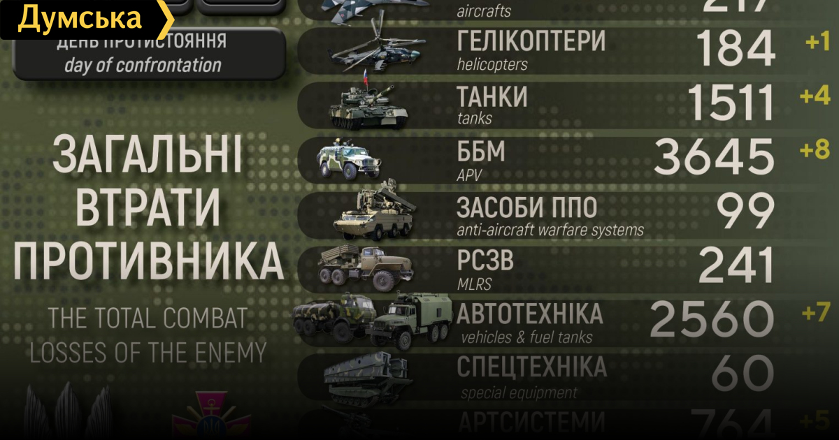 літаків — 217 (+1),